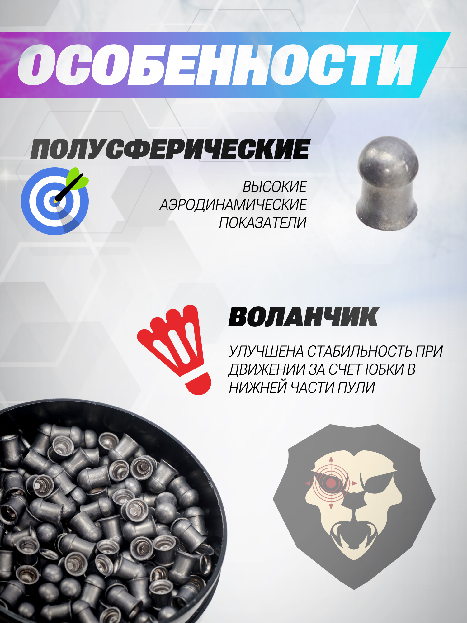 Для пневматического оружия в калибре 4.5 мм подойдут обозреваемые воланчиковые пули из линейки Домед Пеллетс - конструкция таких экземпляров состоит из юбки, которая требуется для стабилизации в полете, и головки. Последнюю выполнили в коническом формате, за счет чего отмечается улучшенная аэродинамика и кучность.