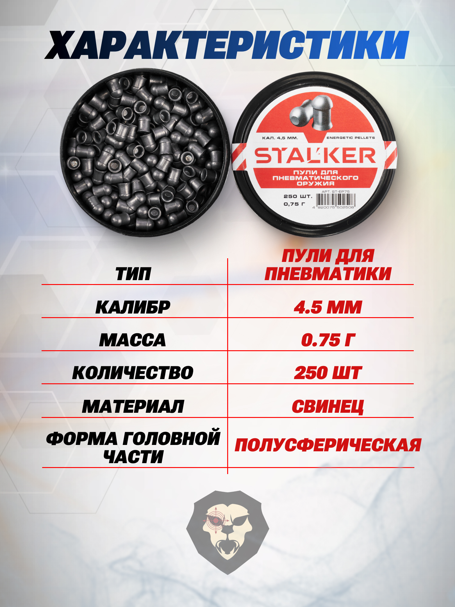 Пули пневматические Stalker Energetic Pellets 4.5 мм (250 шт, 0.75 г) купить в интернет-магазине Popadiv10.