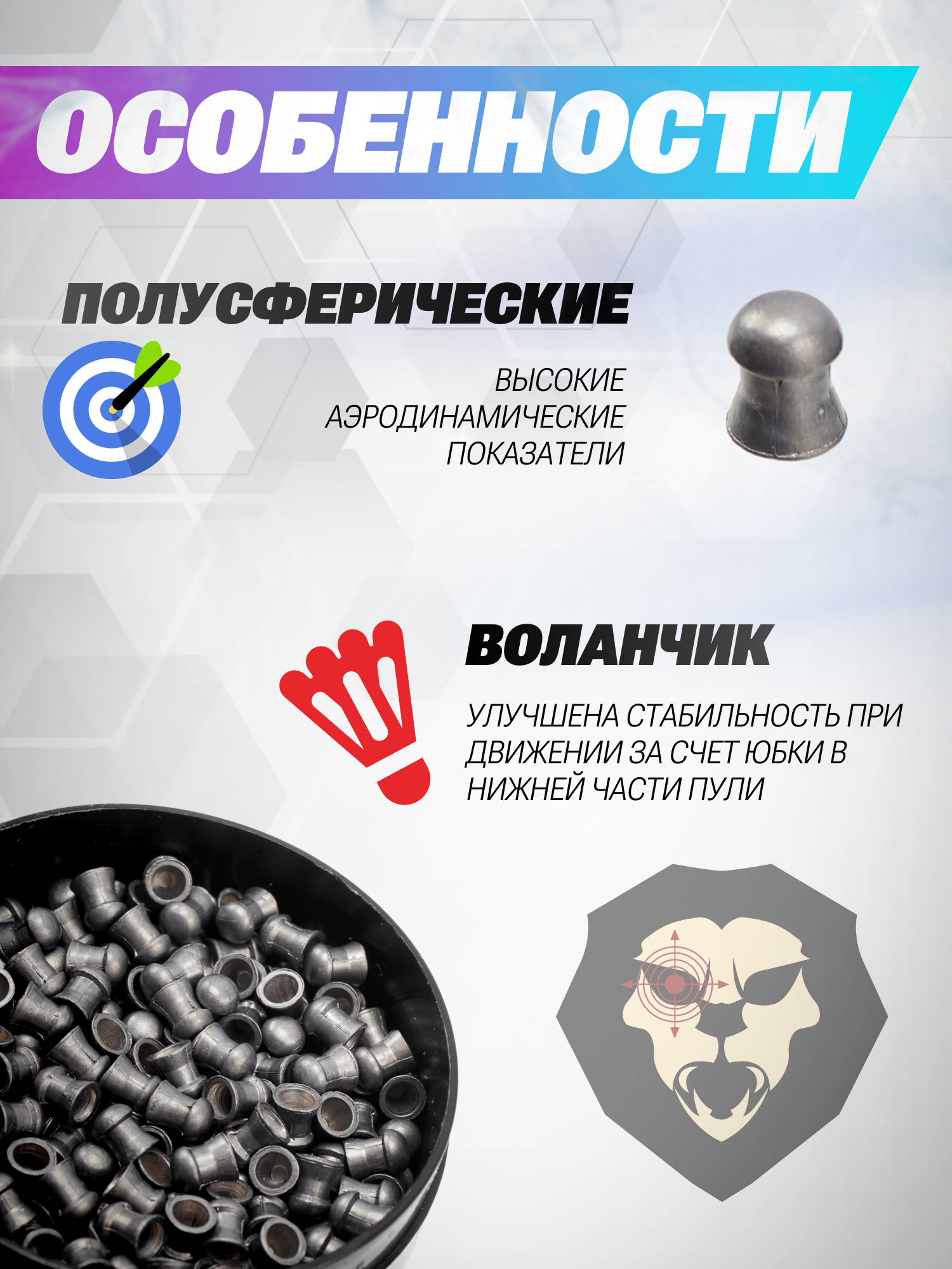 К перечню боеприпасов от указанной компании относятся представляемые пули Фиелд Таргет в калибре 4.5 миллиметра из категории воланчиковых, или также известных под названием “диаболо”. Формат таких снарядов представляет собой конструкцию, которая состоит из юбки для стабилизации полета и головной части - в рассматриваемом варианте последняя характеризуется полусферой, что положительно сказывается на аэродинамике.