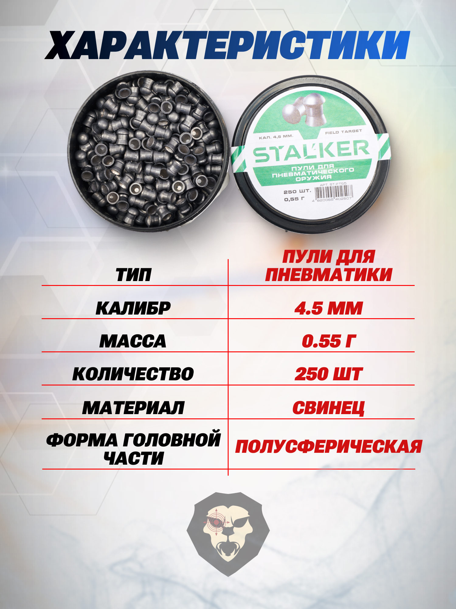 Пули пневматические Stalker Field Target 4.5 мм (250 шт, 0.55 г) купить в интернет-магазине Popadiv10.