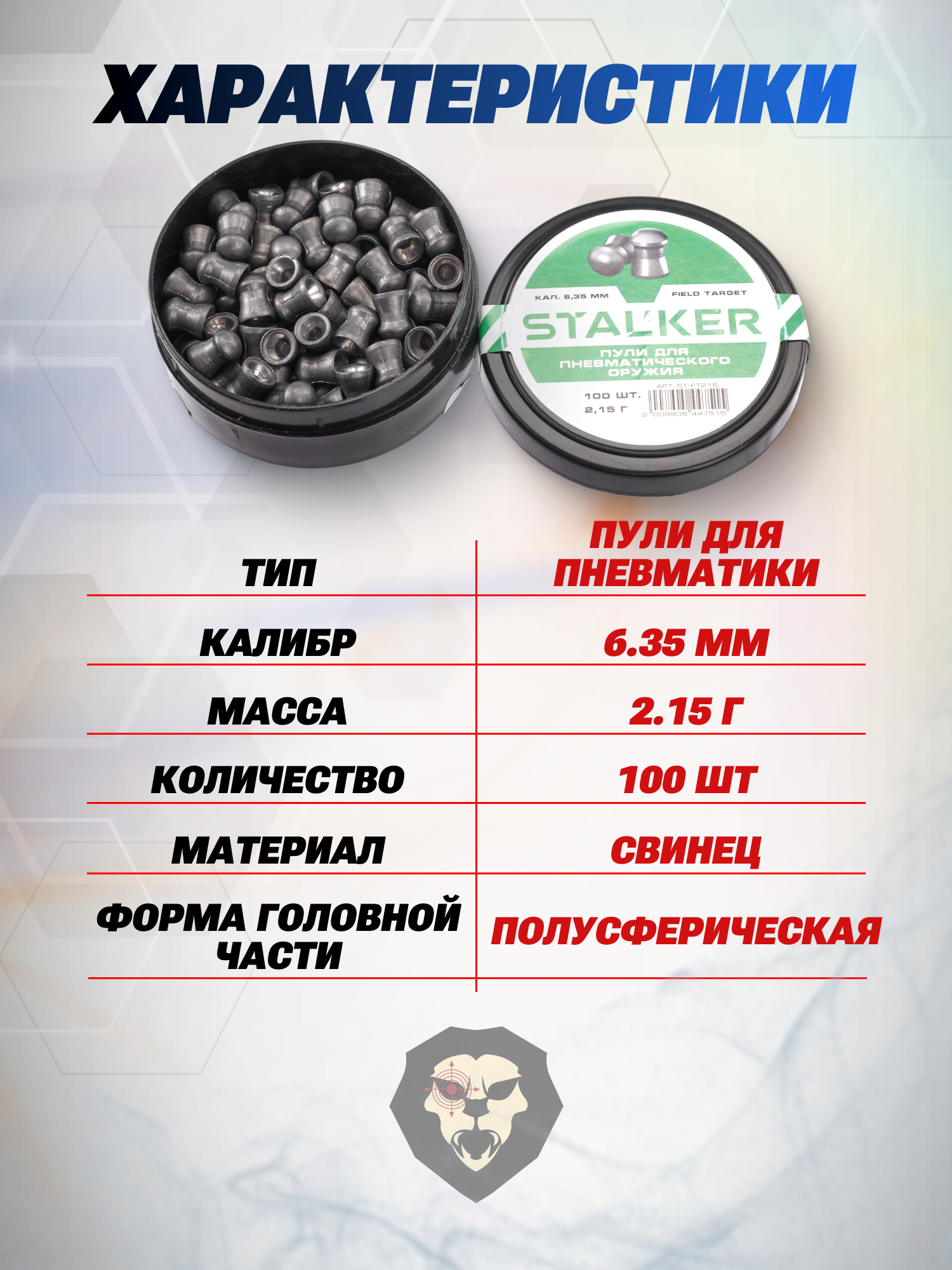Пули пневматические Stalker Field Target 6.35 мм (100 шт, 2.15 г) купить в интернет-магазине Popadiv10.
