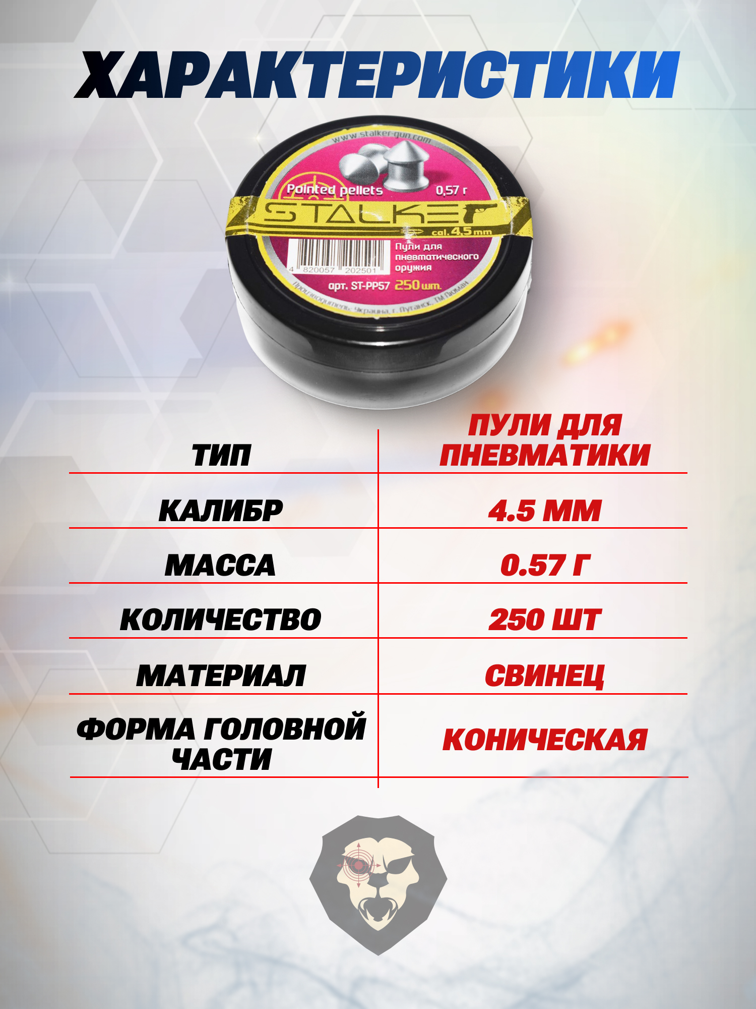 Пули пневматические Stalker Pointed Pellets 4.5 мм (250 шт, 0.57 г) купить в интернет-магазине Popadiv10.