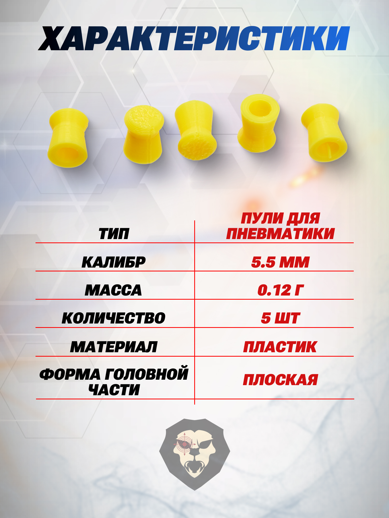 | Комплектация | Пули - 5 шт, упаковка |