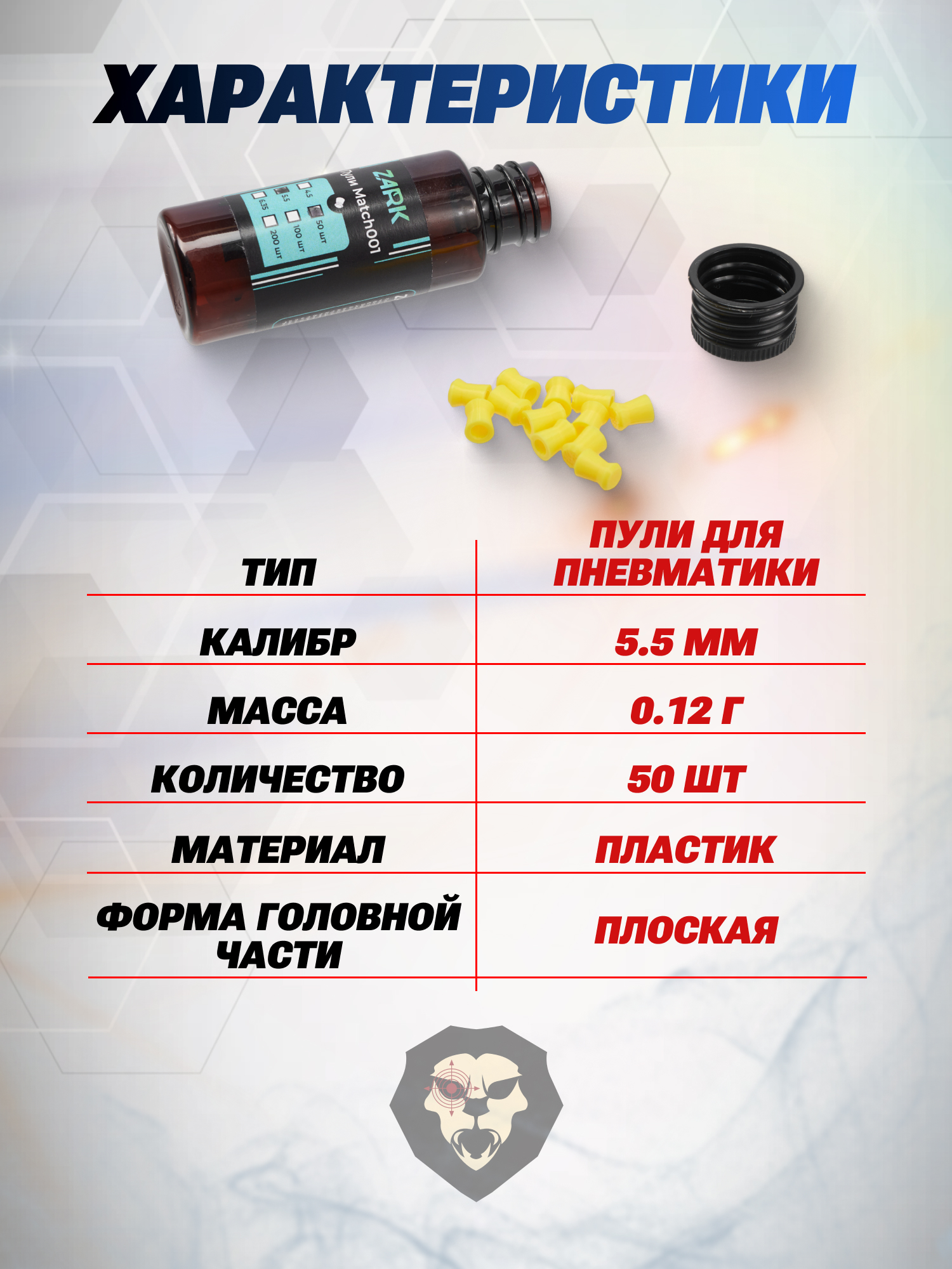 Пули для пневматики легкие Zark Arms Match001 5.5 мм (пластик, 50 шт, 0.12 г, для винтовок до 3 Дж) купить в интернет-магазине Popadiv10.