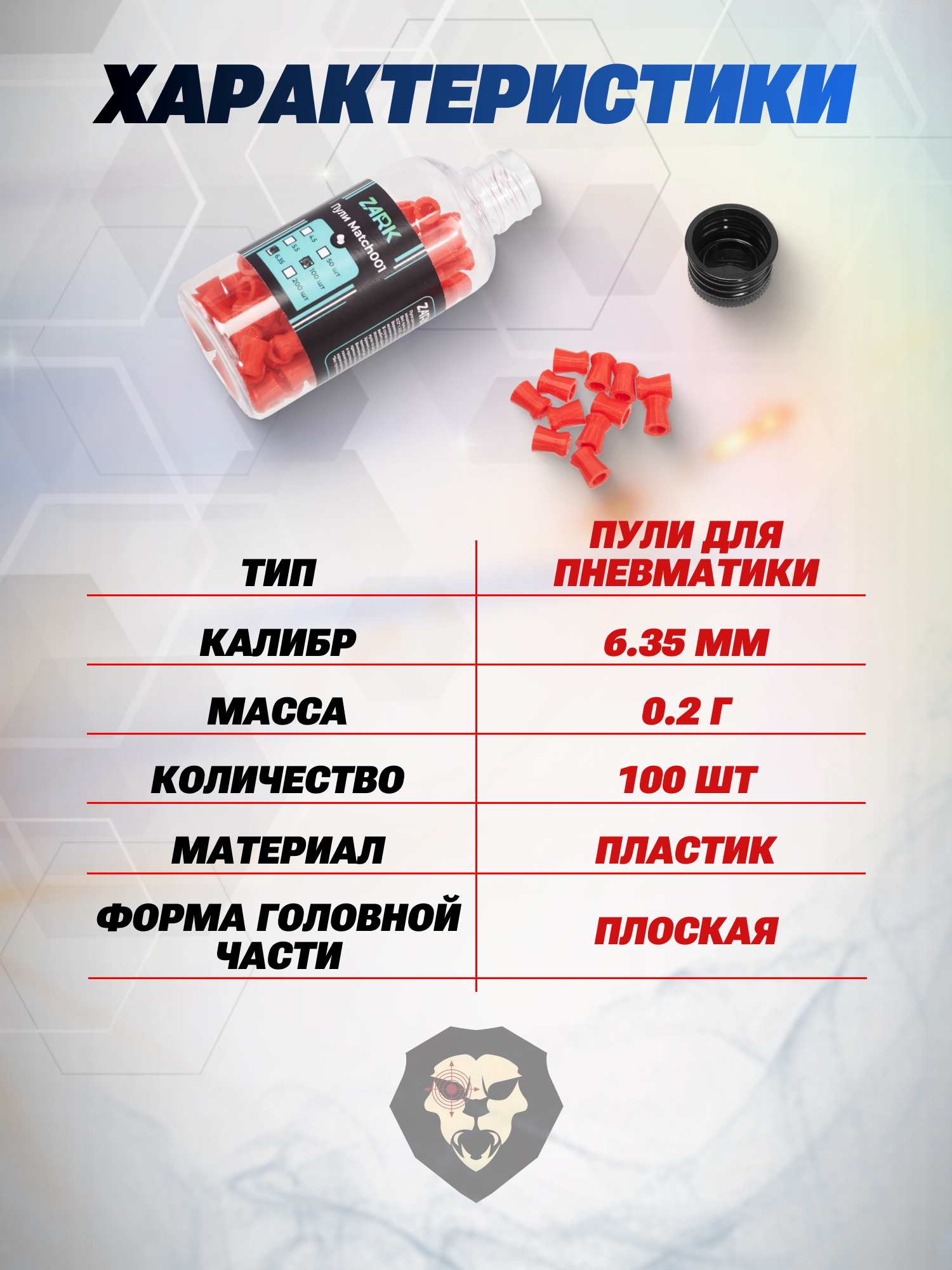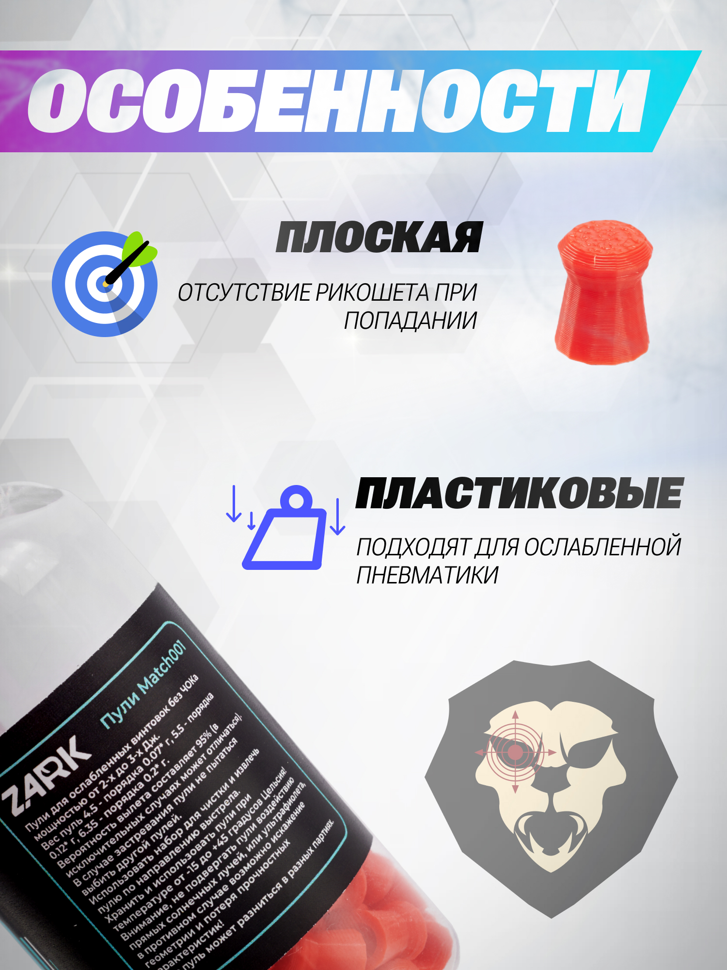 Пули пневматические Zark Arms Match001 6.35 мм (100 шт, 0.2 г, полимер, легкие, для ослабленных винтовок) купить в интернет-магазине Popadiv10.