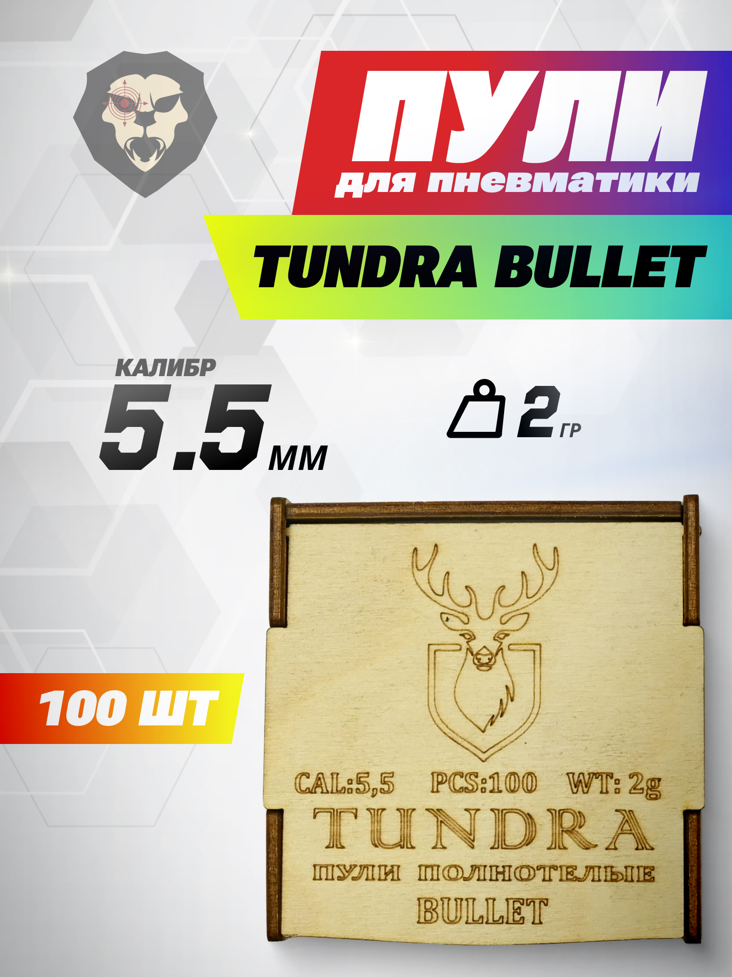 Полнотелые пули 5.5 мм поставляются в коробе из натурального дерева. Вместимость оного составляет 100 снарядов. Для защиты от попадания грязи и влаги при транспортировке и хранении присутствует дополнительная полиэтиленовая упаковка.