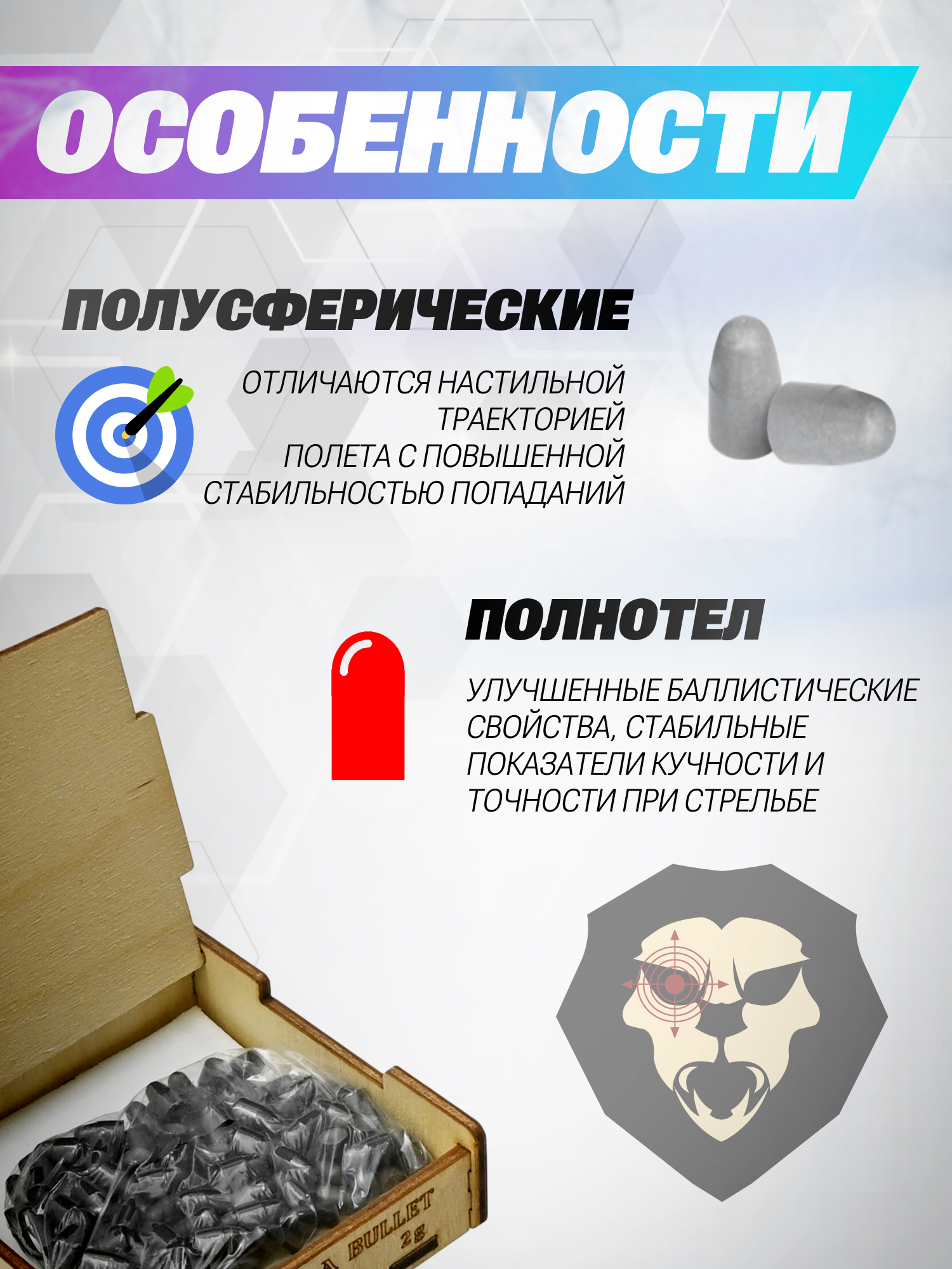 | Комплектация | Пули - 100 шт, упаковка |
