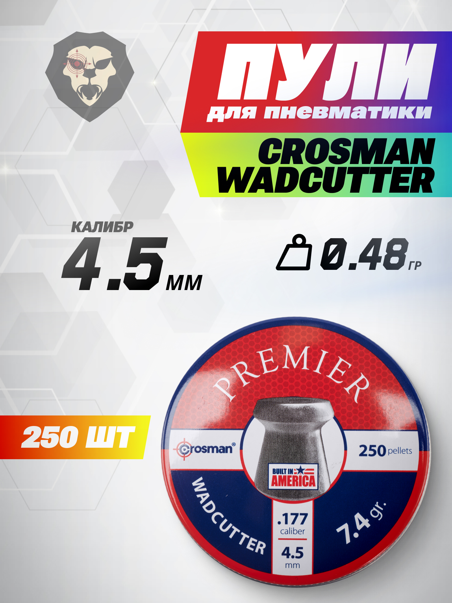 Пули пневматические Crosman Wadcutter 4.5 мм (250 шт, 0.48 г) купить в интернет-магазине Popadiv10.