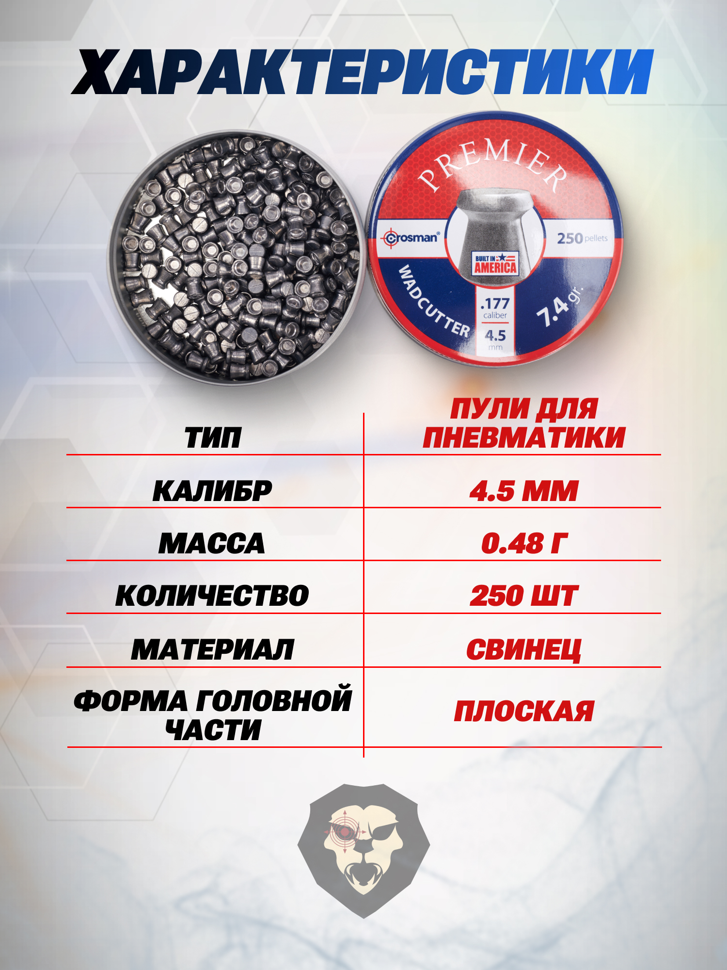 Пули пневматические Crosman поставляются в оружейные магазины в жестяных плоских банках на 250 снарядов.