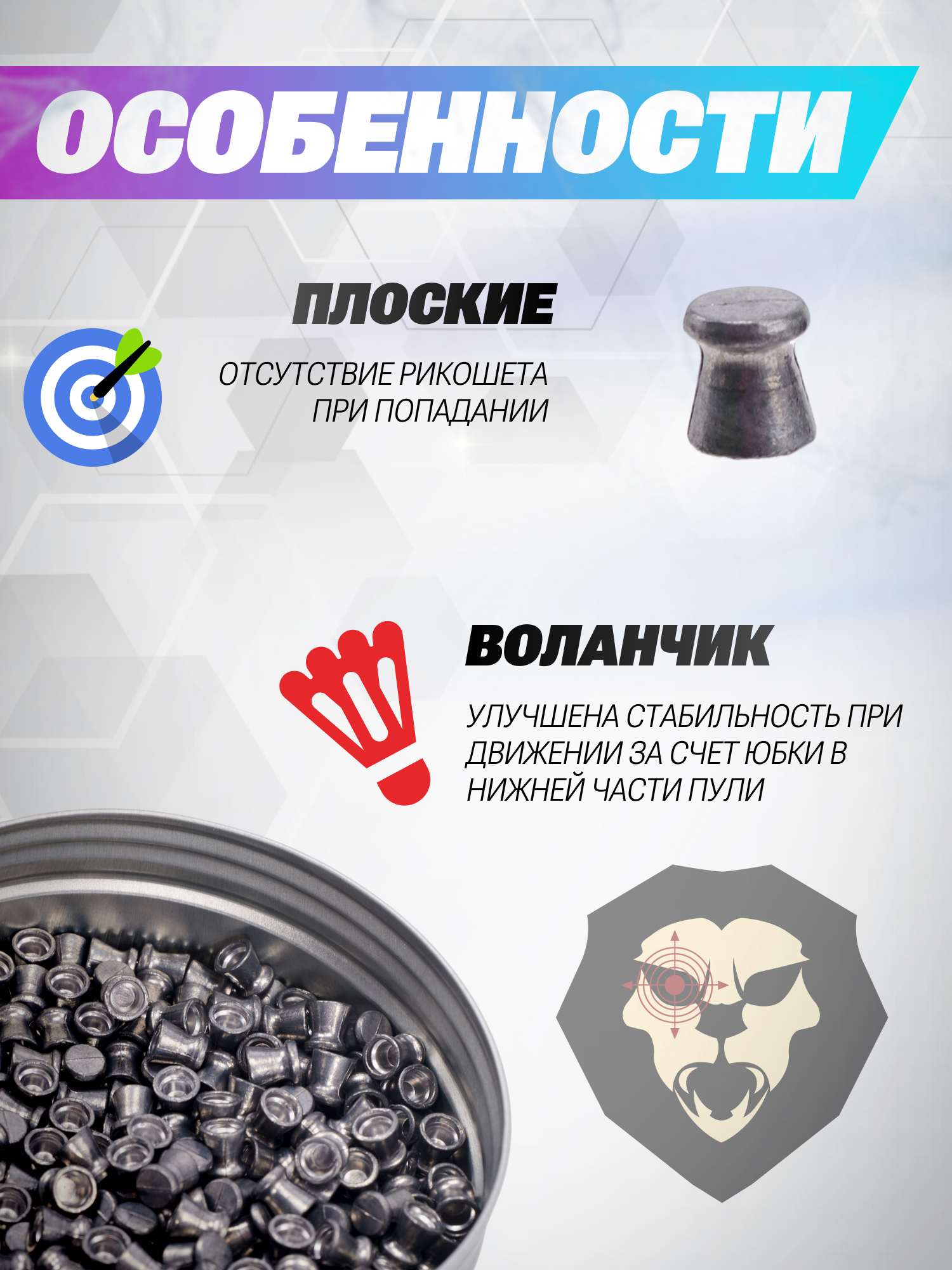 | Особенности | Отсутствие рикошета при попадании |