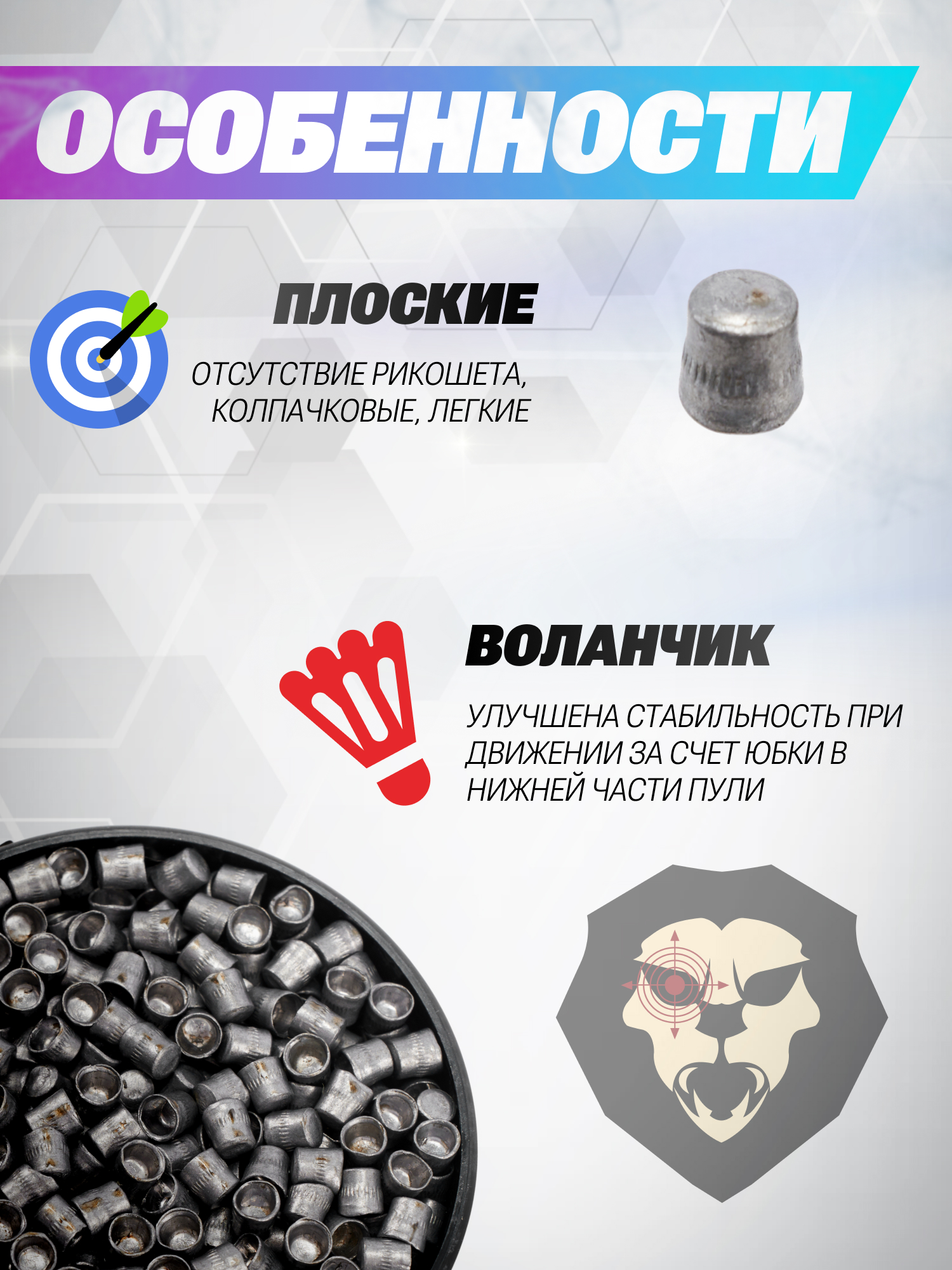 Пули для пневматики 4.5 мм Сплав Диаболо имеют колпачковую форму с плоской головной частью. В совокупности это минимизирует вероятность рикошета, что будет особенно актуально при использовании мини-тиров. Заявленная масса зарядов составляет 0.4 грамма, а материалом изготовления послужил свинец.