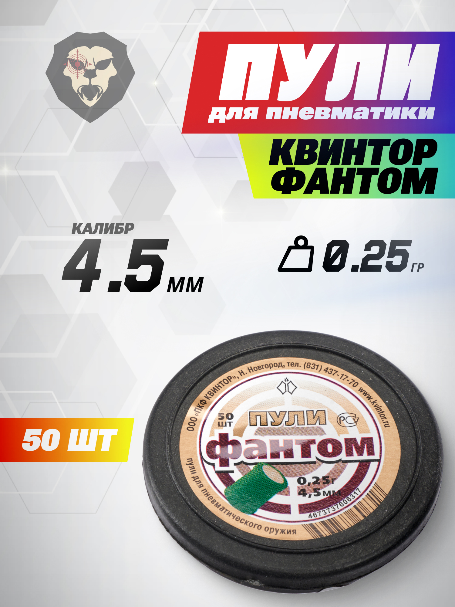 Пули пневматические Квинтор Фантом 4.5 мм (50 шт, 0.25 г) купить в интернет-магазине Popadiv10.