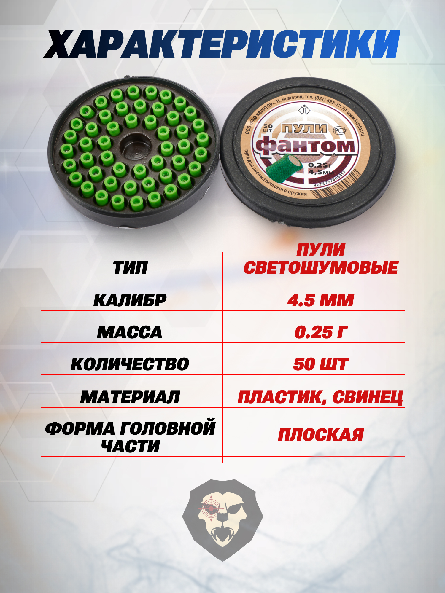 Информация о товаре "Пули пневматические Квинтор Фантом 4.5 мм (50 шт, 0.25 г)" носит ознакомительный характер, и не является публичной офертой, определяемой положениями Статьи 437 Гражданского кодекса Российской Федерации, характеристики, внешний вид, цвет и комплектация могут быть изменены производителем без уведомления.