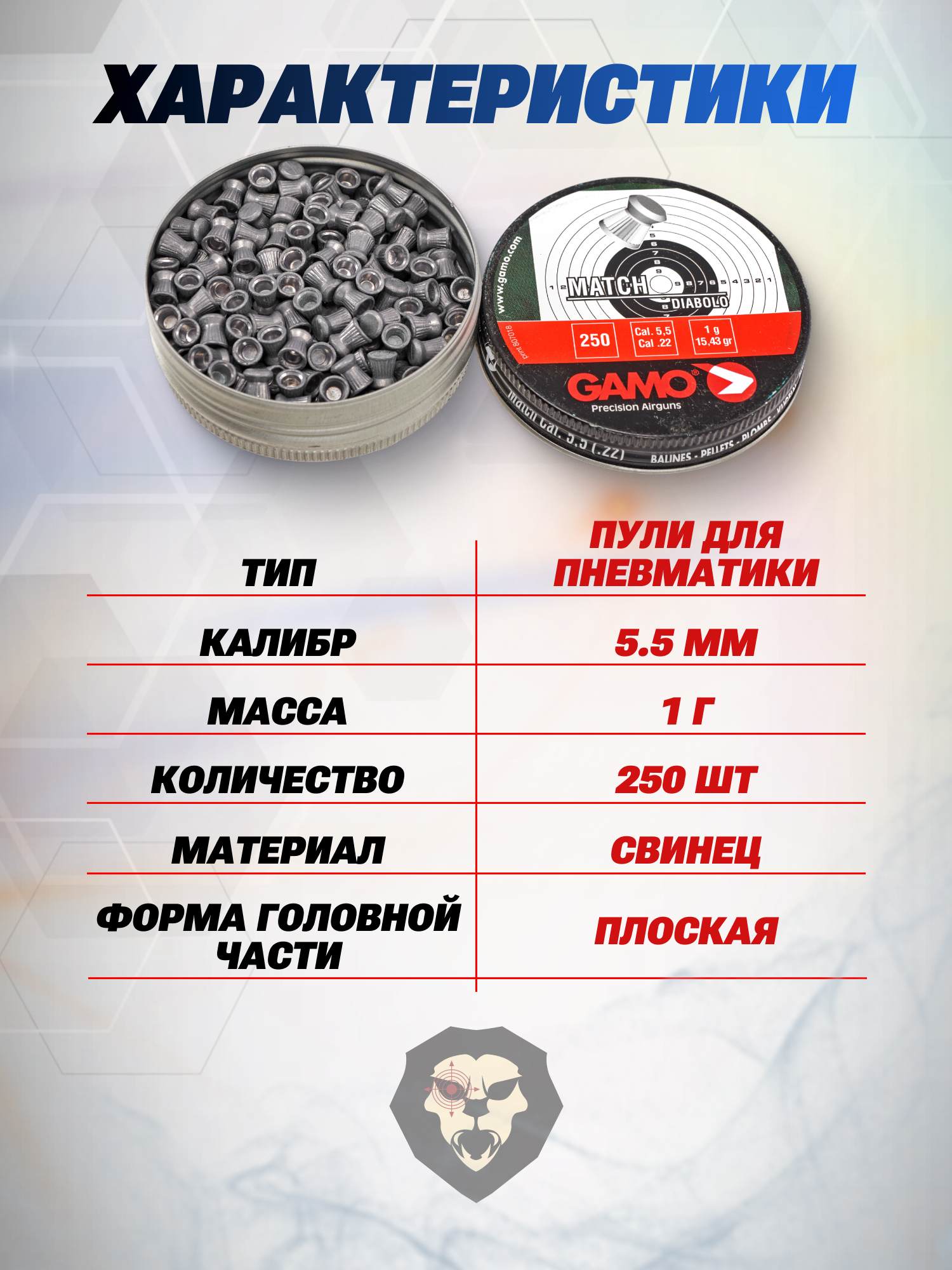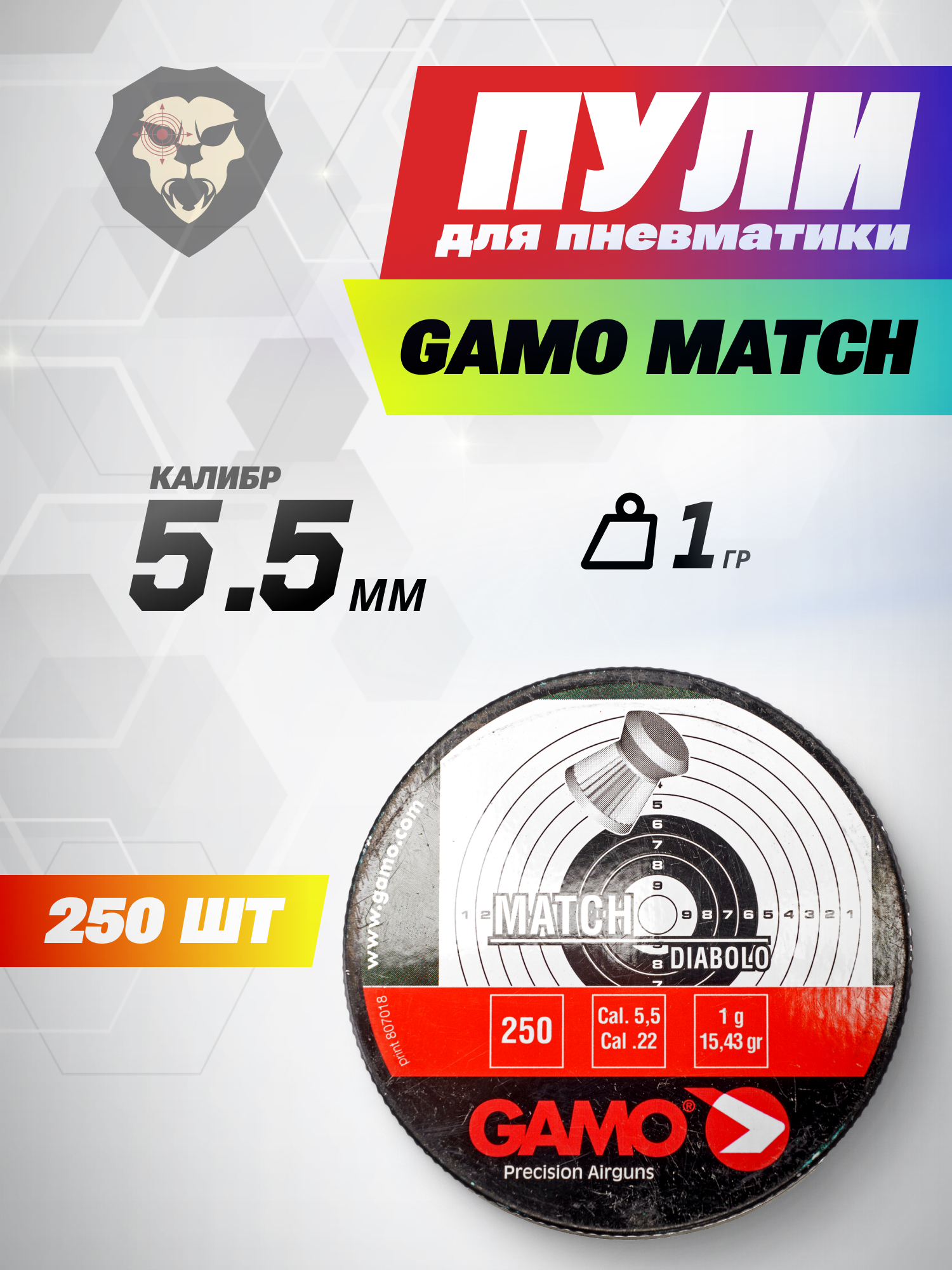 Пули пневматические Gamo Match 5.5 мм (250 шт, 1.0 г) купить в интернет-магазине Popadiv10.