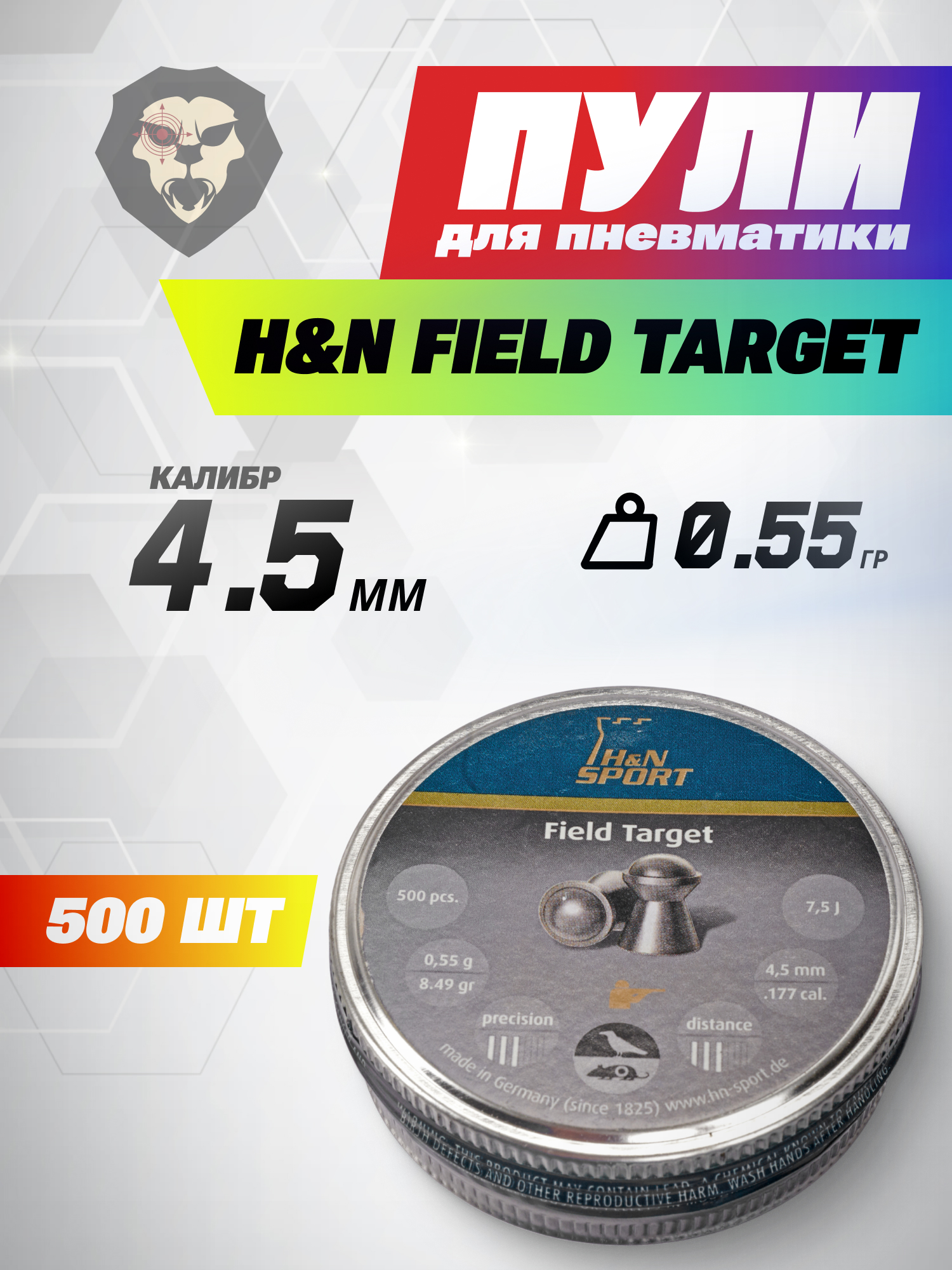 Пули пневматические H&N Field Target 4.5 мм (500 шт, 0.55 г) купить в интернет-магазине Popadiv10.
