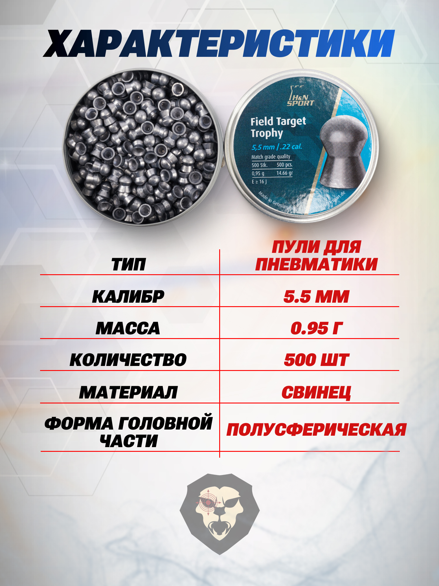 Пули пневматические H&N Field Target Trophy 5.5 мм (500 шт, 0.95 г) купить в интернет-магазине Popadiv10.