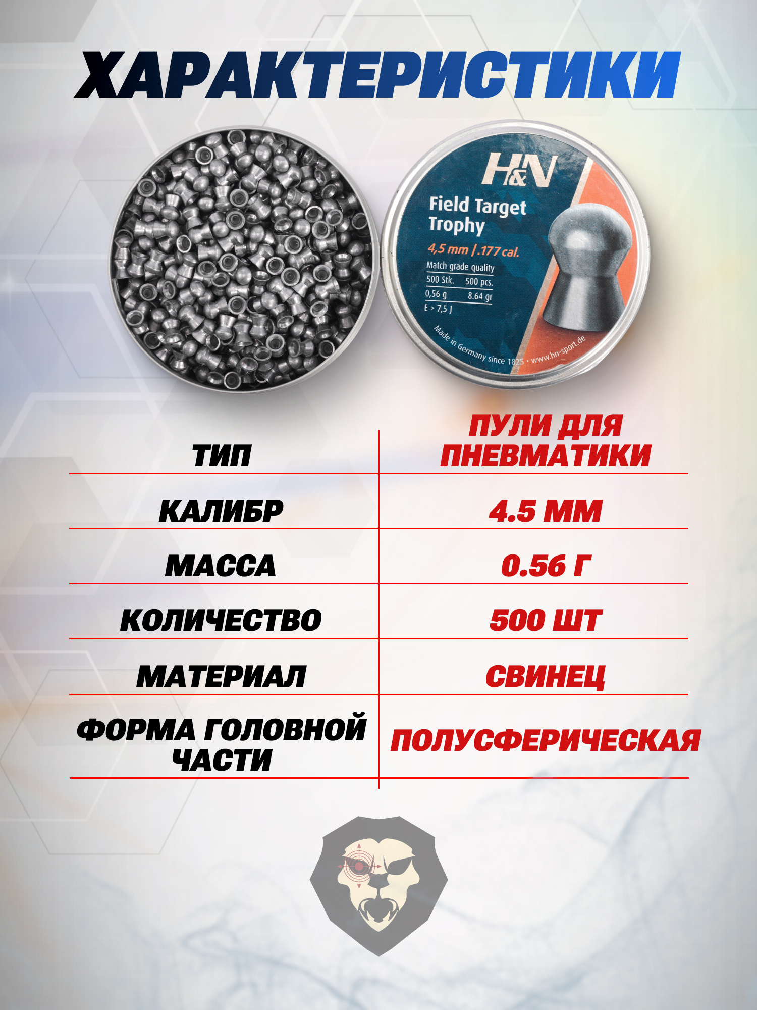 Пули пневматические H&N Field Target Trophy 4.5 мм (500 шт, 0.56 грамм) купить в интернет-магазине Popadiv10.