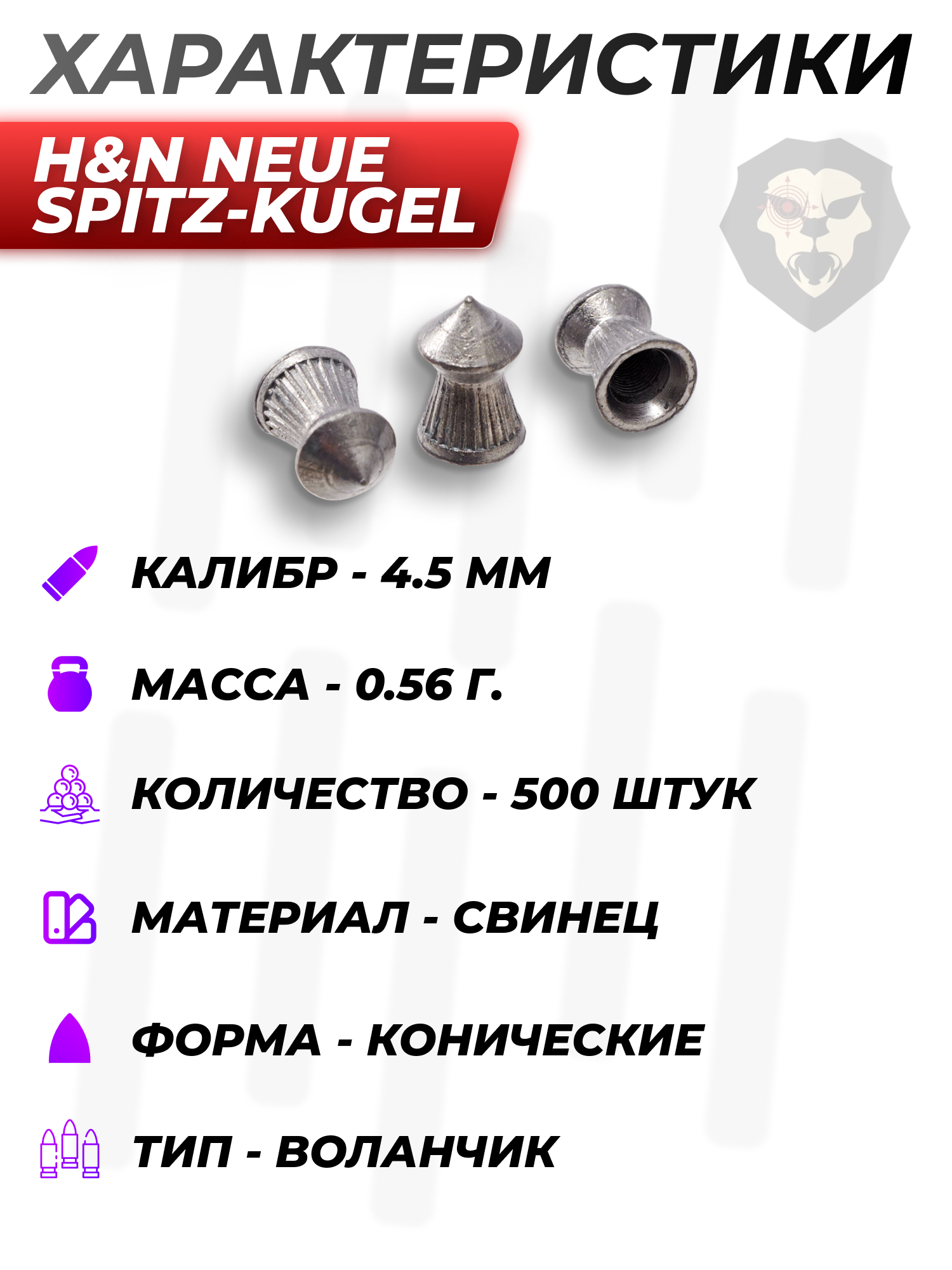 | Комплектация | Пули - 500 шт, упаковка |