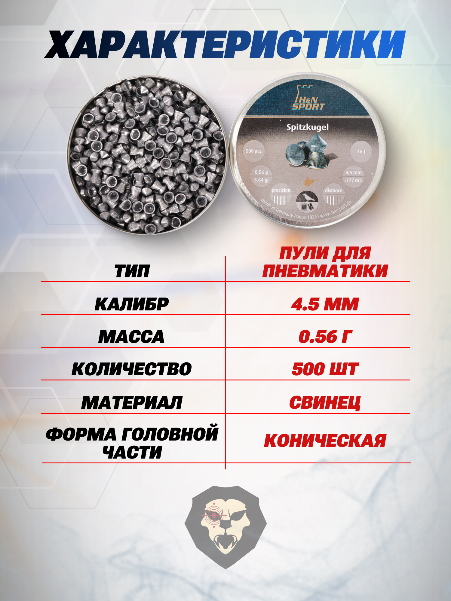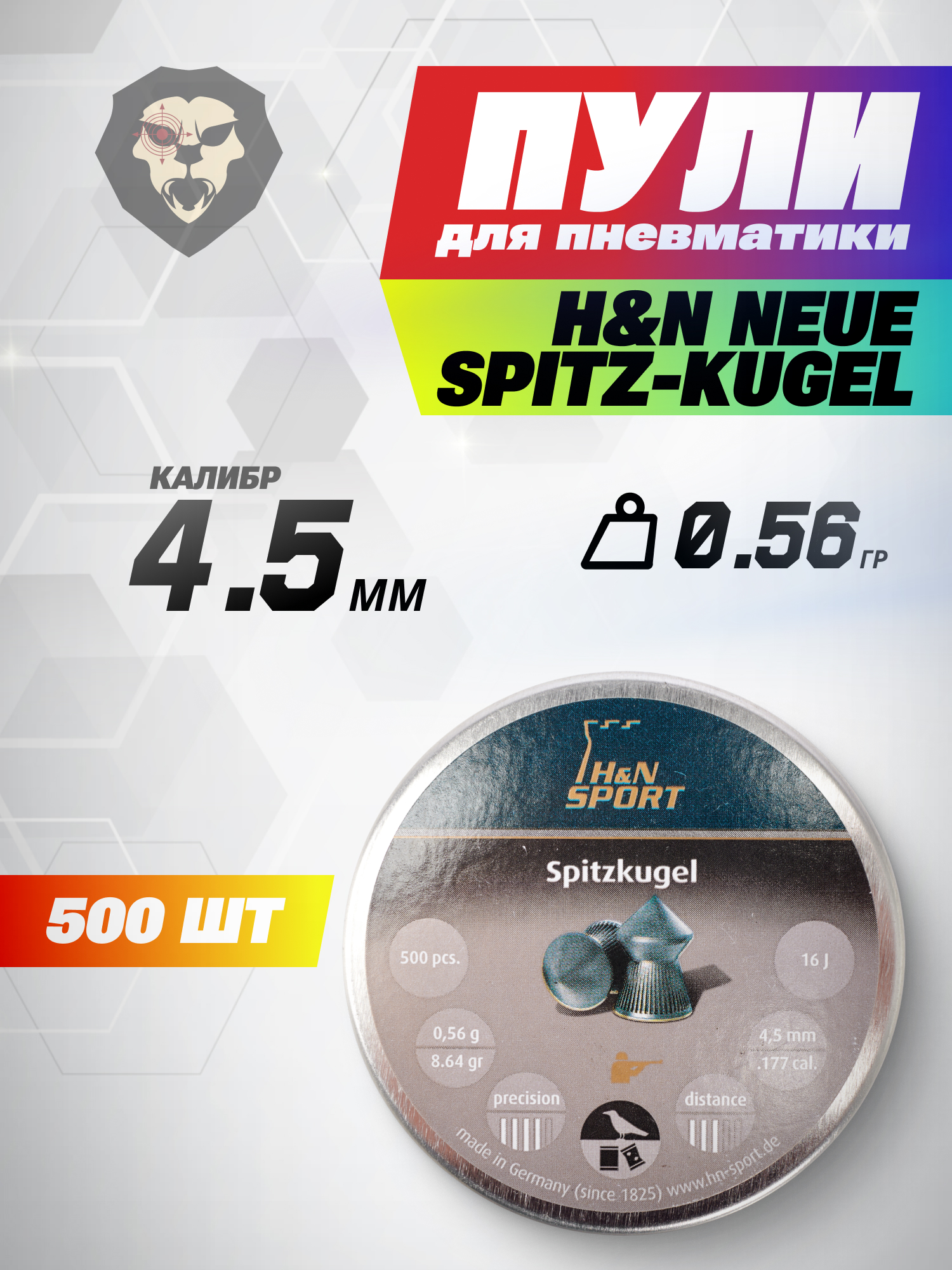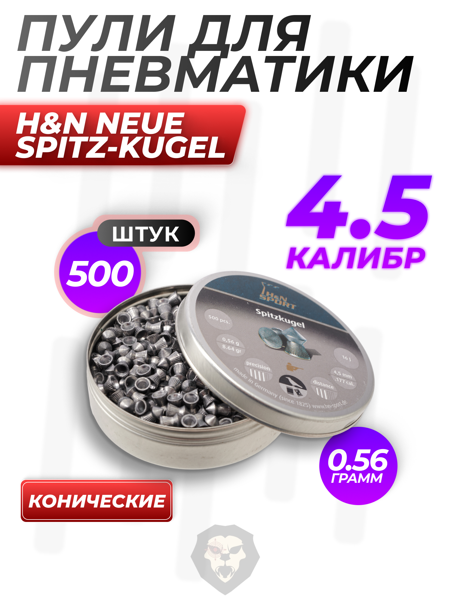 Пули пневматические H&N Neue Spitz-Kugel 4.5 мм (500 шт, 0.56 г) купить в интернет-магазине Popadiv10.