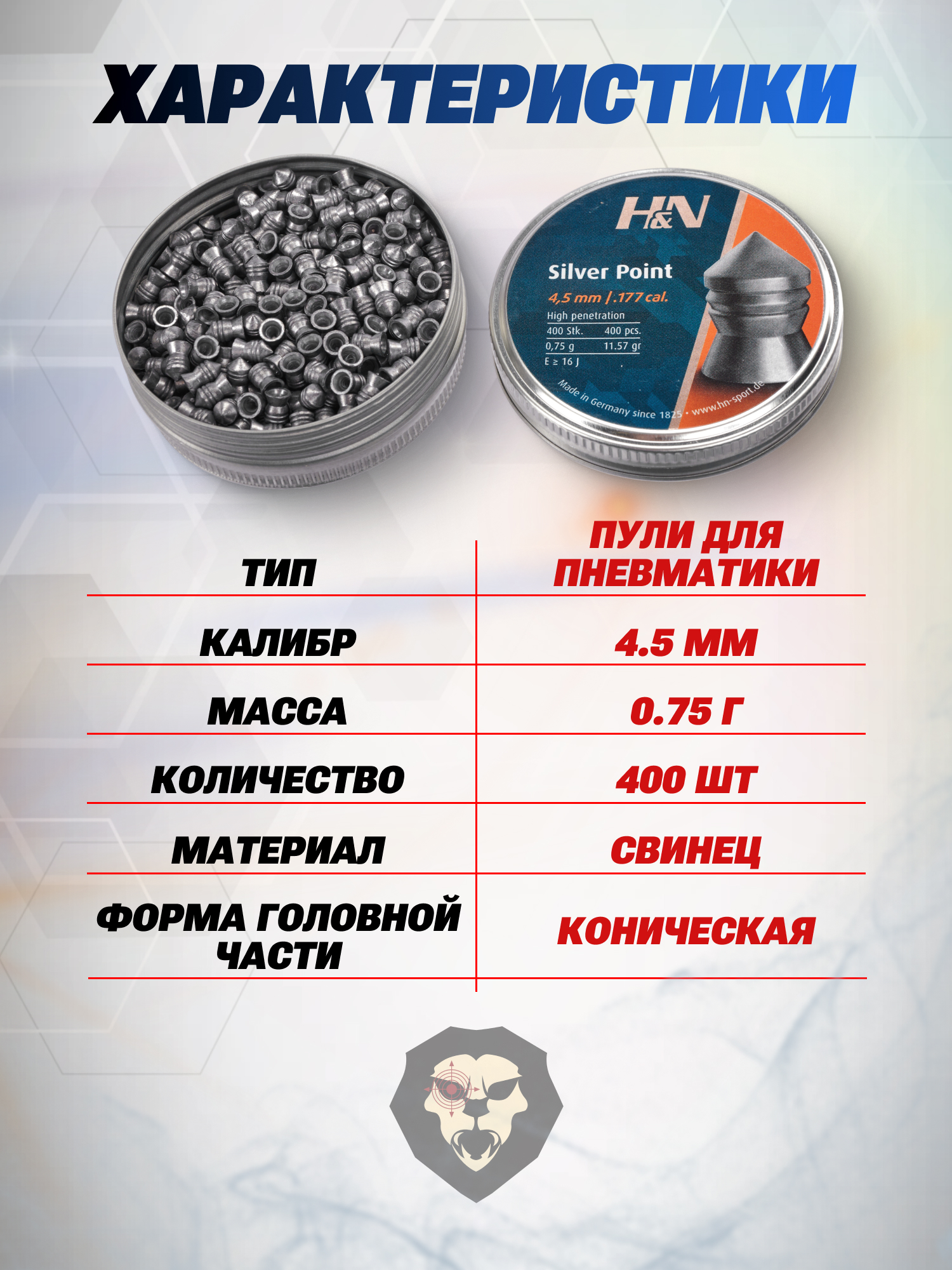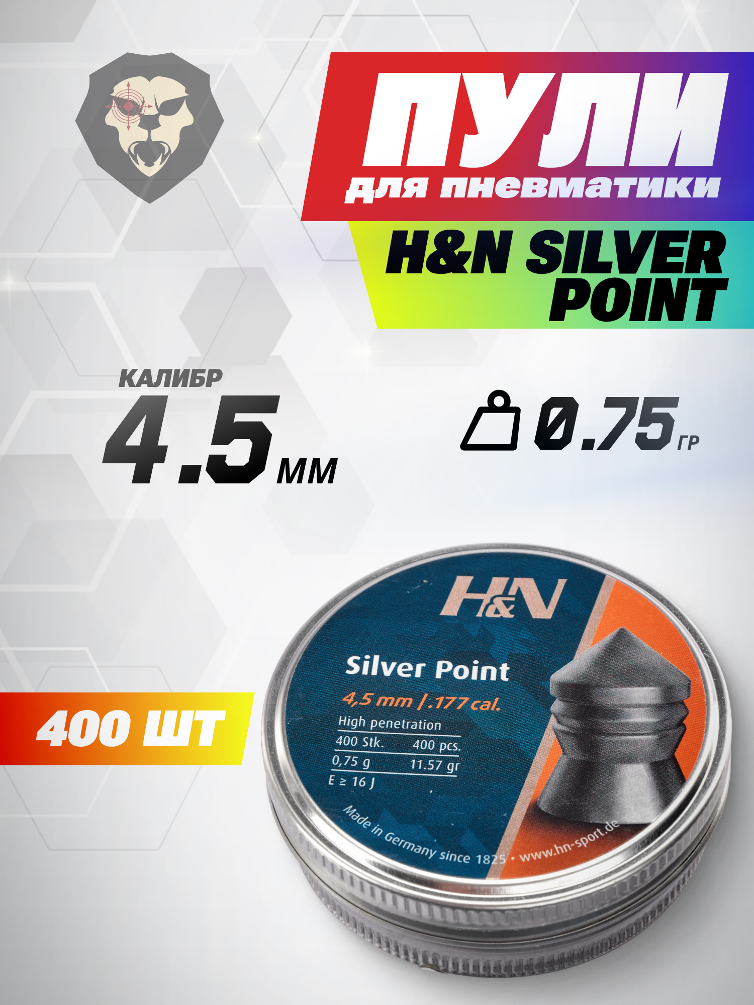 Пули пневматические H&N Silver Point 4.5 мм (400 шт, 0.75 г) купить в интернет-магазине Popadiv10.
