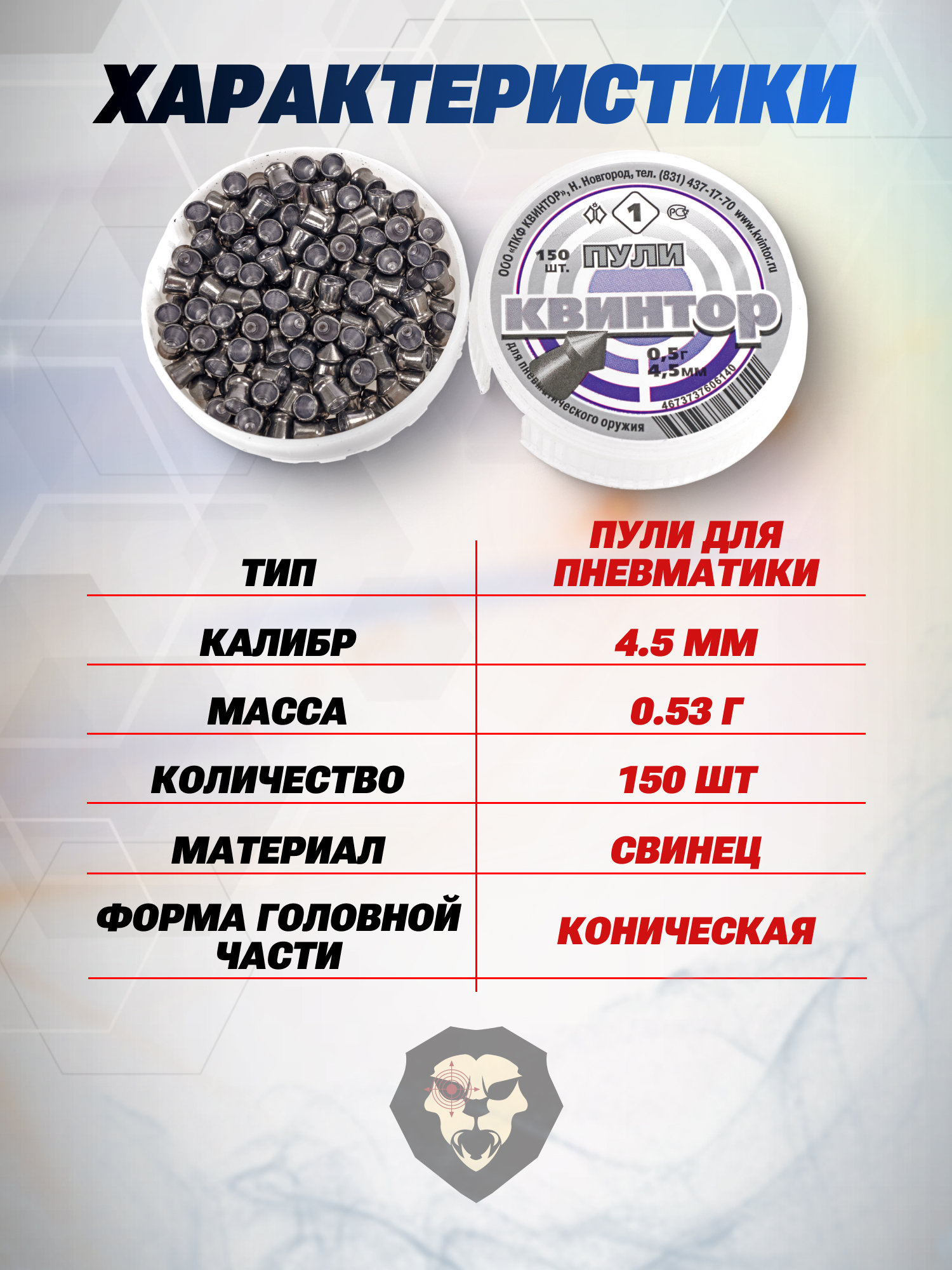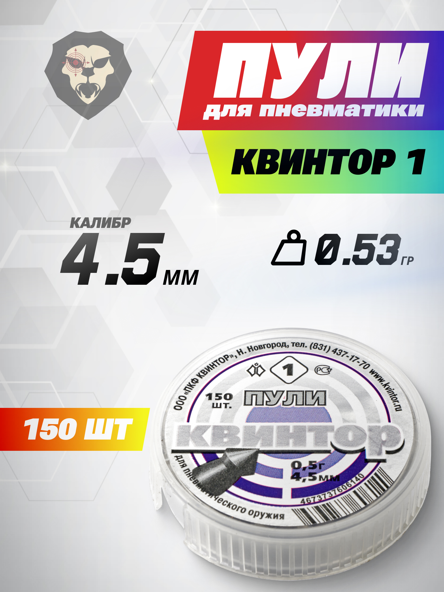 Пули пневматические Квинтор 1 4.5 мм (150 шт, 0.5 грамма, острые) купить в интернет-магазине Popadiv10.