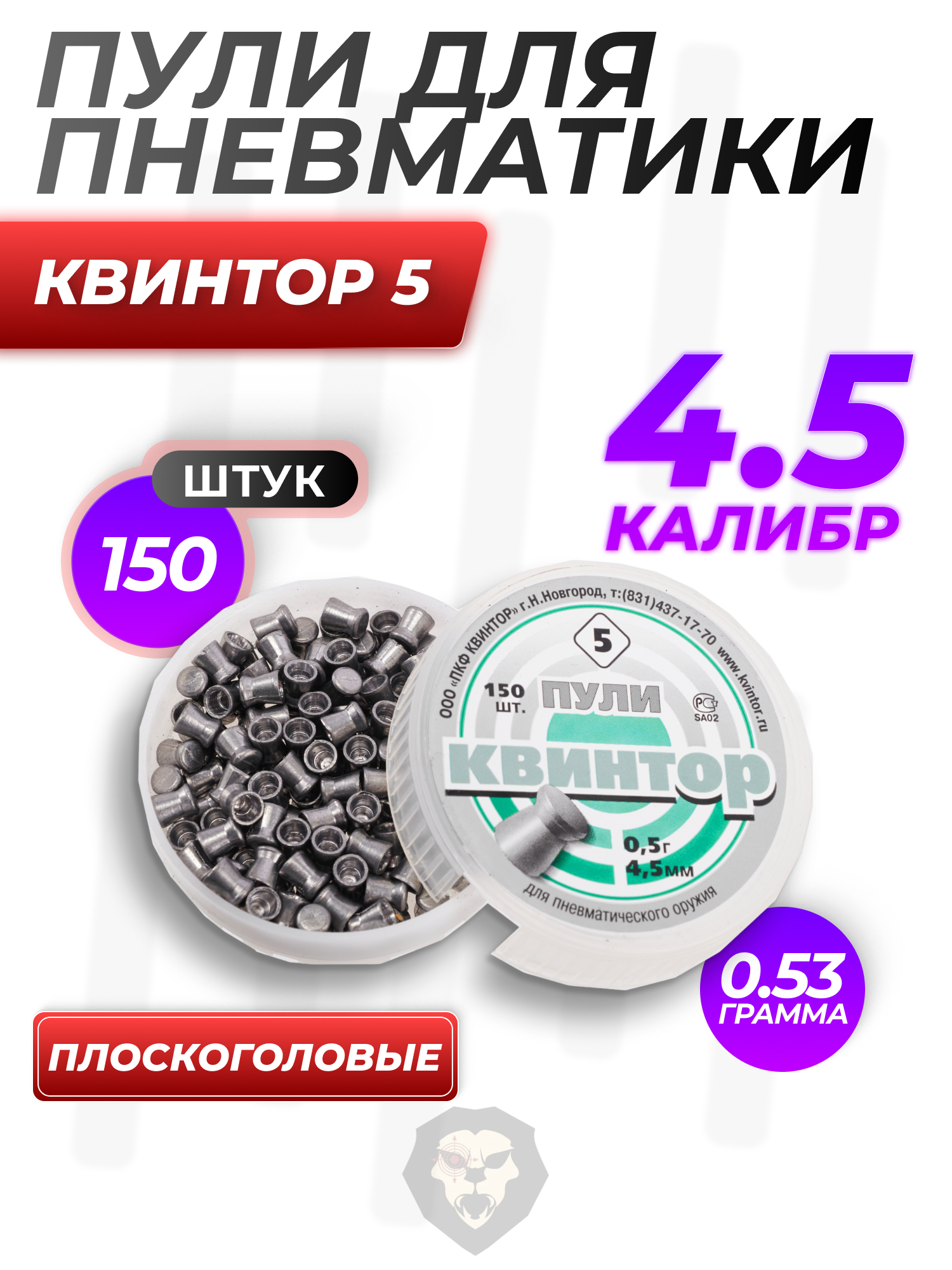 Пули пневматические Квинтор 5 4.5 мм (150 шт, 0.53 грамма, плоскоголовые) купить в интернет-магазине Popadiv10.