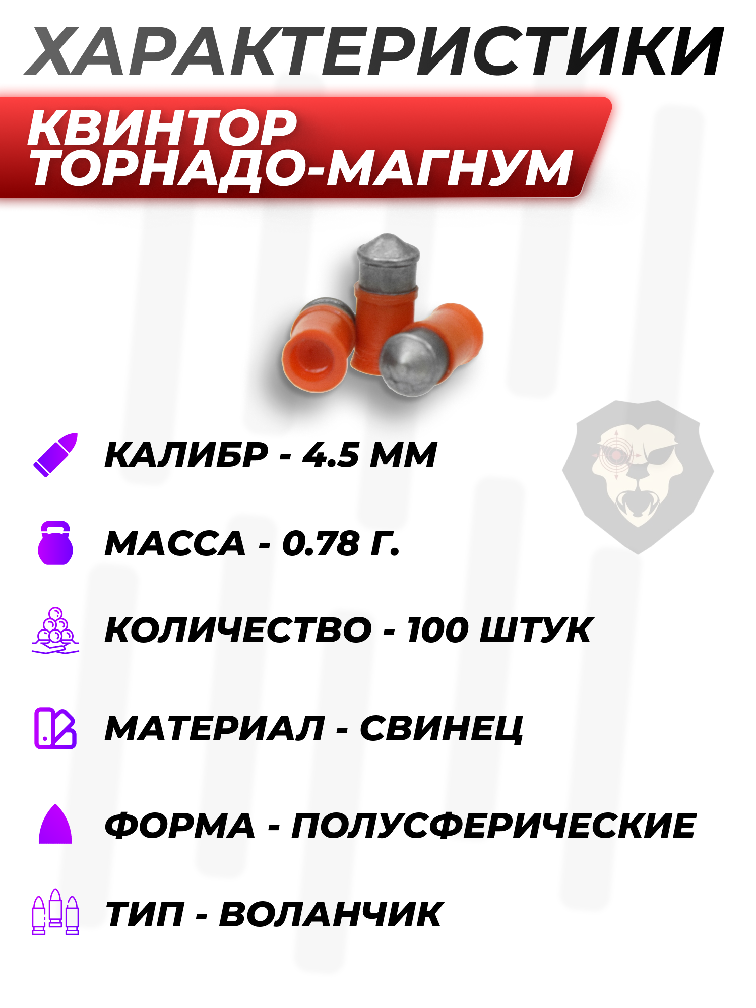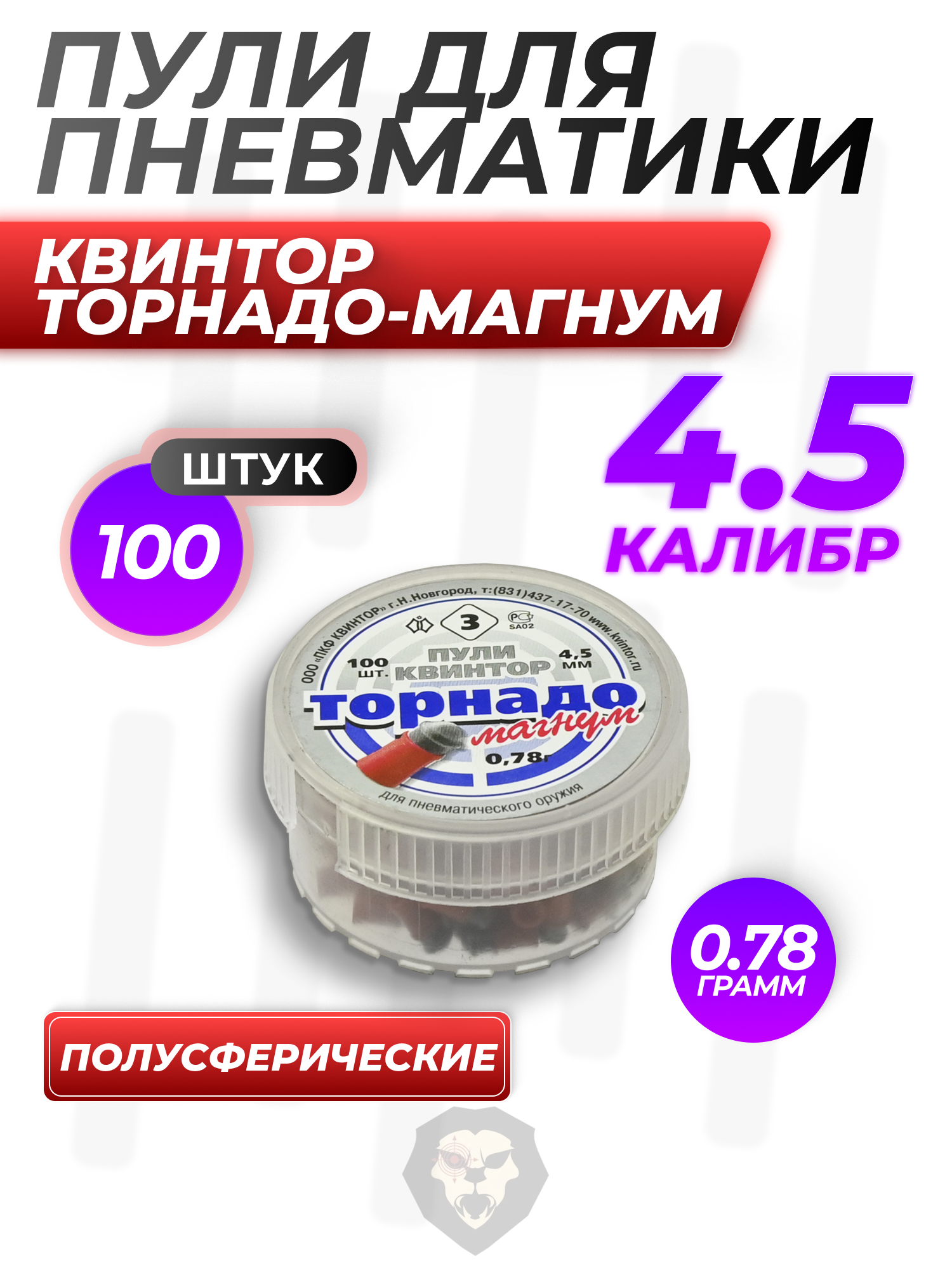 Пули пневматические Квинтор Торнадо-Магнум 4.5 мм (100 шт, 0.78 г, полусферическая) купить в интернет-магазине Popadiv10.
