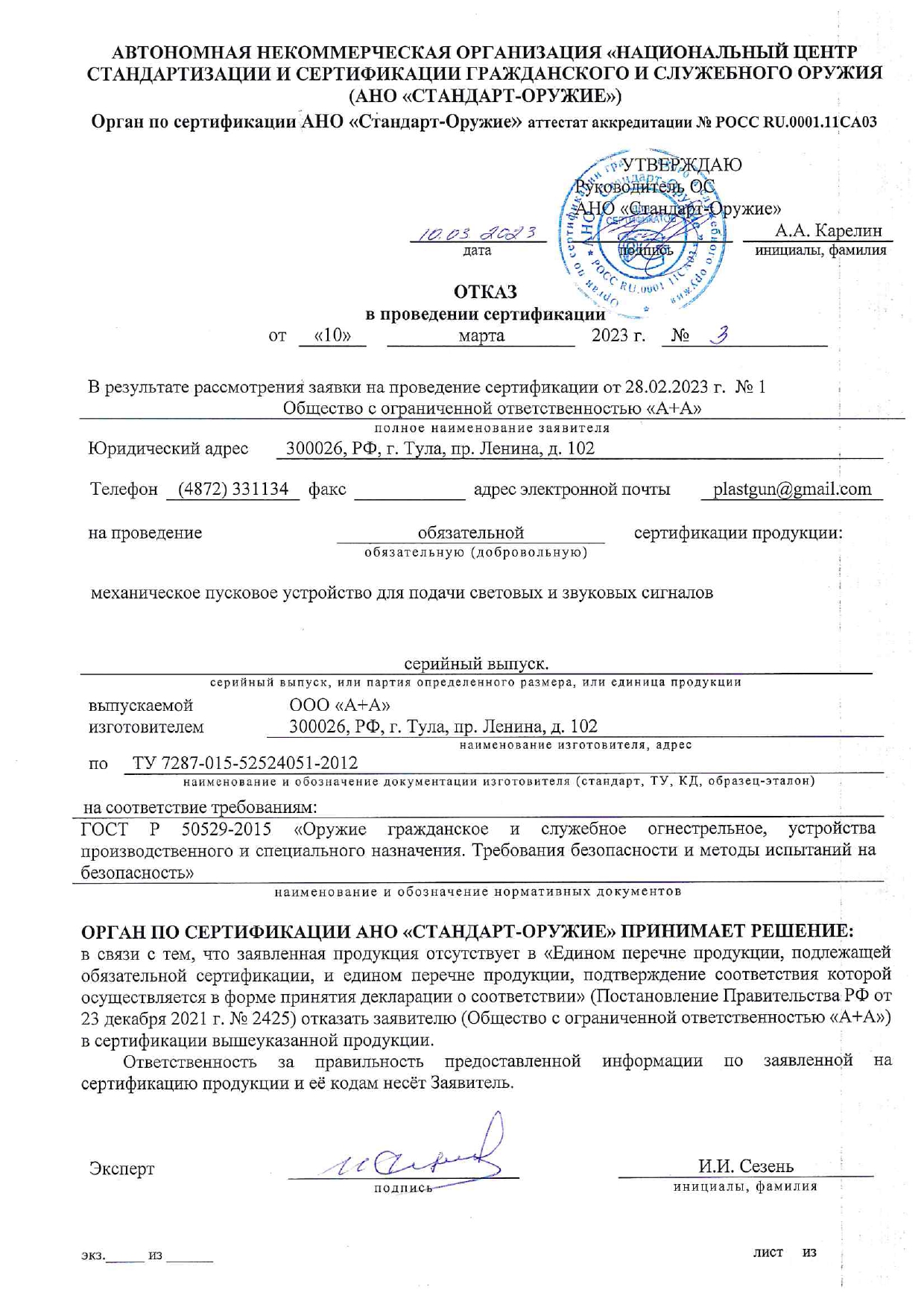 Артикул производителя Пусковое устройство пистолет ПУ-4 А+А (Гром, СО, БАМ 18x51) по низкой цене 7990 руб. Модель со штрихкодом производителя Вы можете оплатить наложенным платежем с доставкой или в отделении транспортной компании (ПЭК, СДЭК, Boxberry). Ваш заказ со штрихкодом 2000000136752 забрать на почте с оплатой при получении в любой части Российской Федерации.