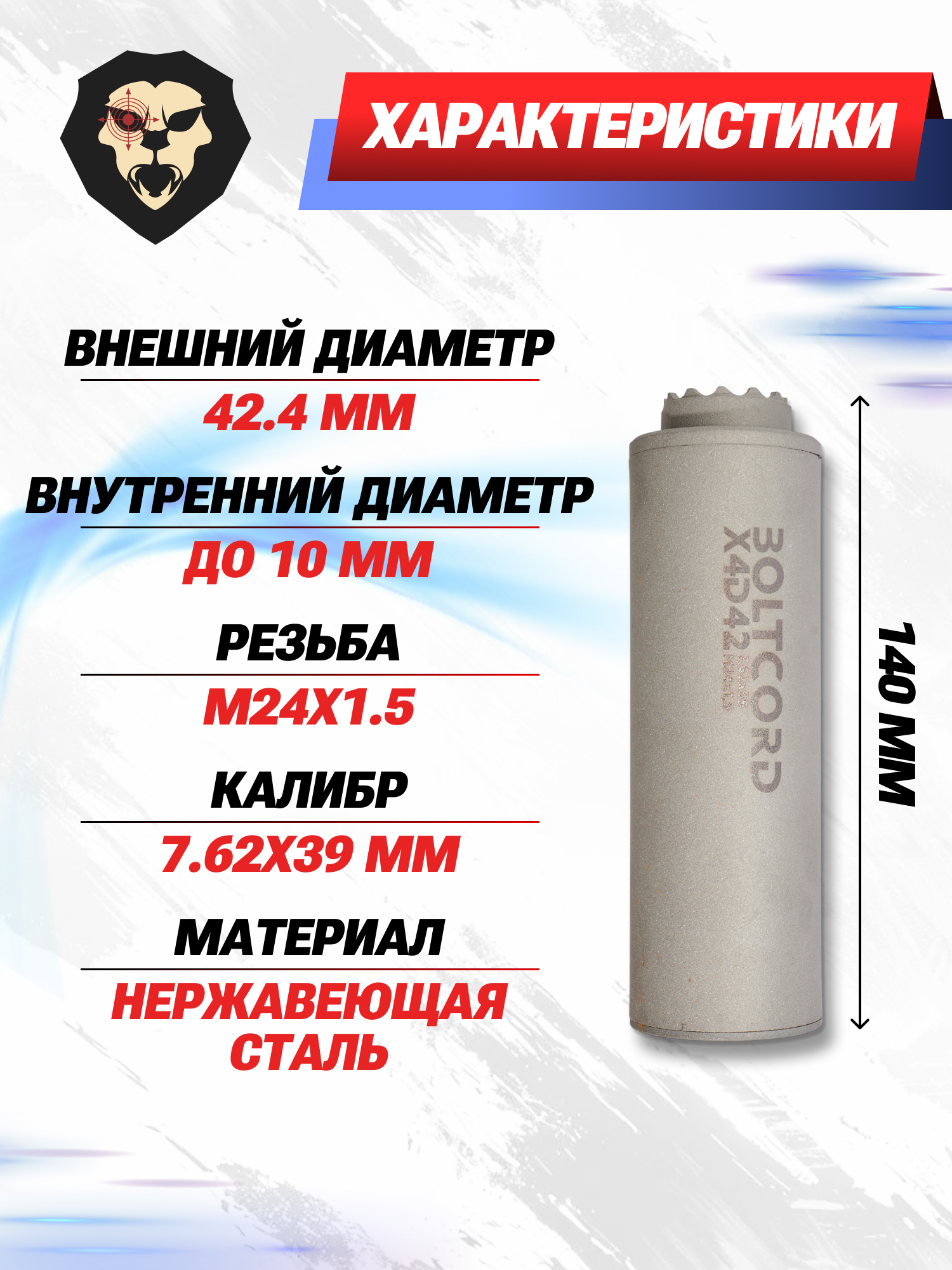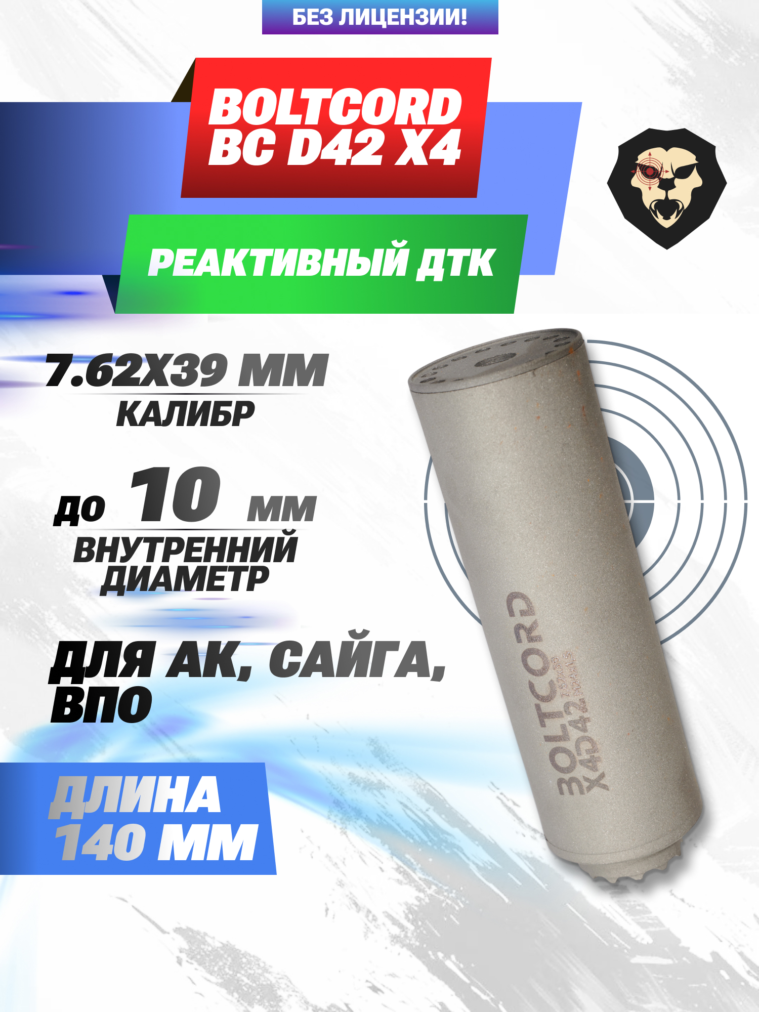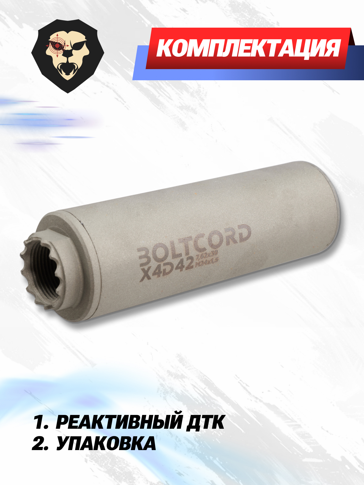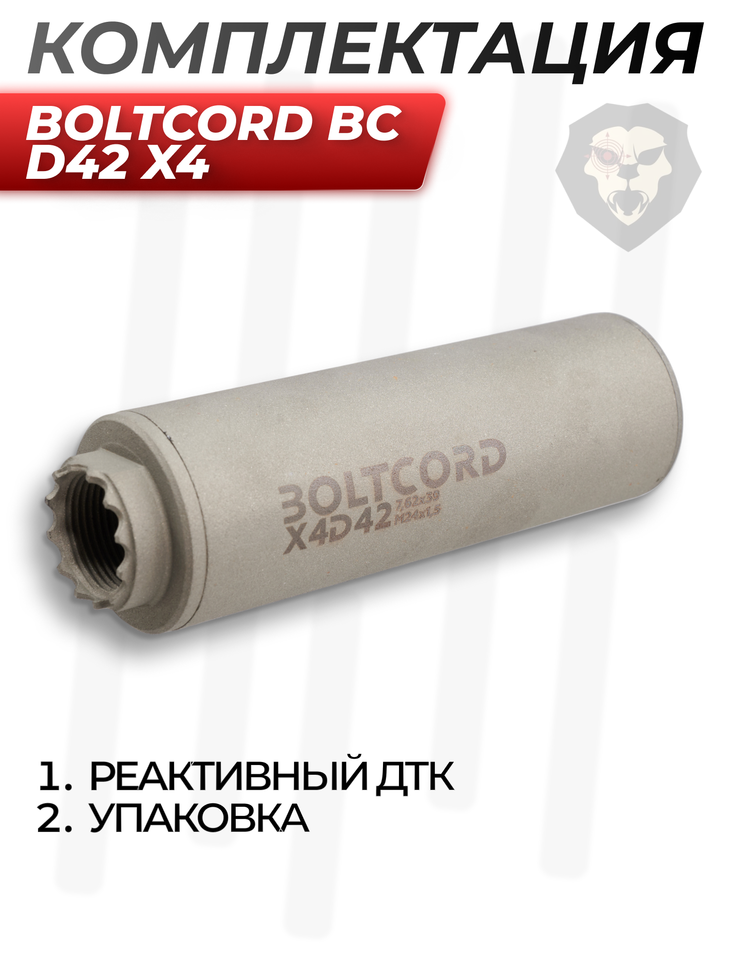 Информация о товаре "Реактивный ДТК Boltcord BC D42 X4 (7.62x39 мм, M24x1.5)" носит ознакомительный характер, и не является публичной офертой, определяемой положениями Статьи 437 Гражданского кодекса Российской Федерации, характеристики, внешний вид, цвет и комплектация могут быть изменены производителем без уведомления.