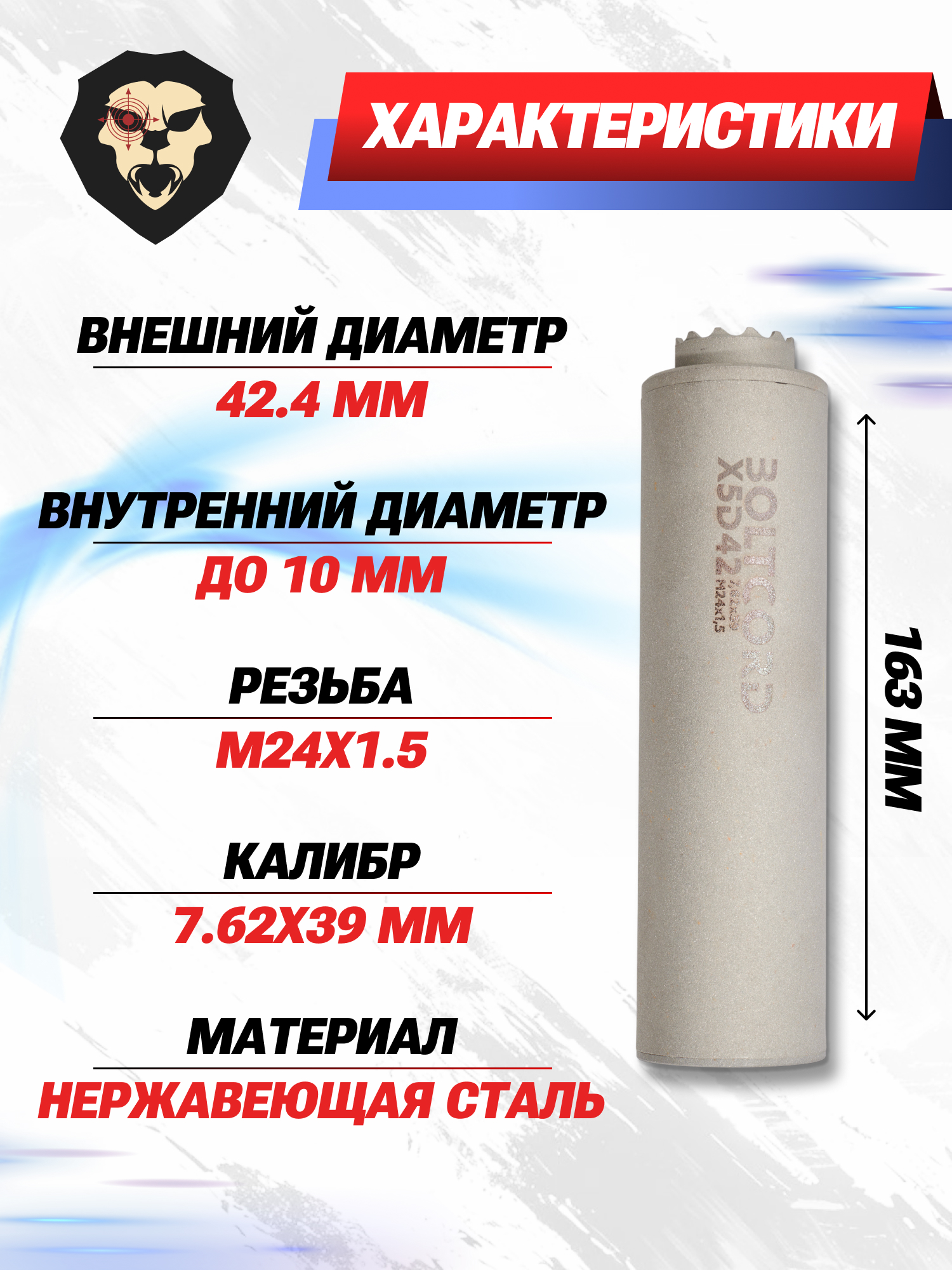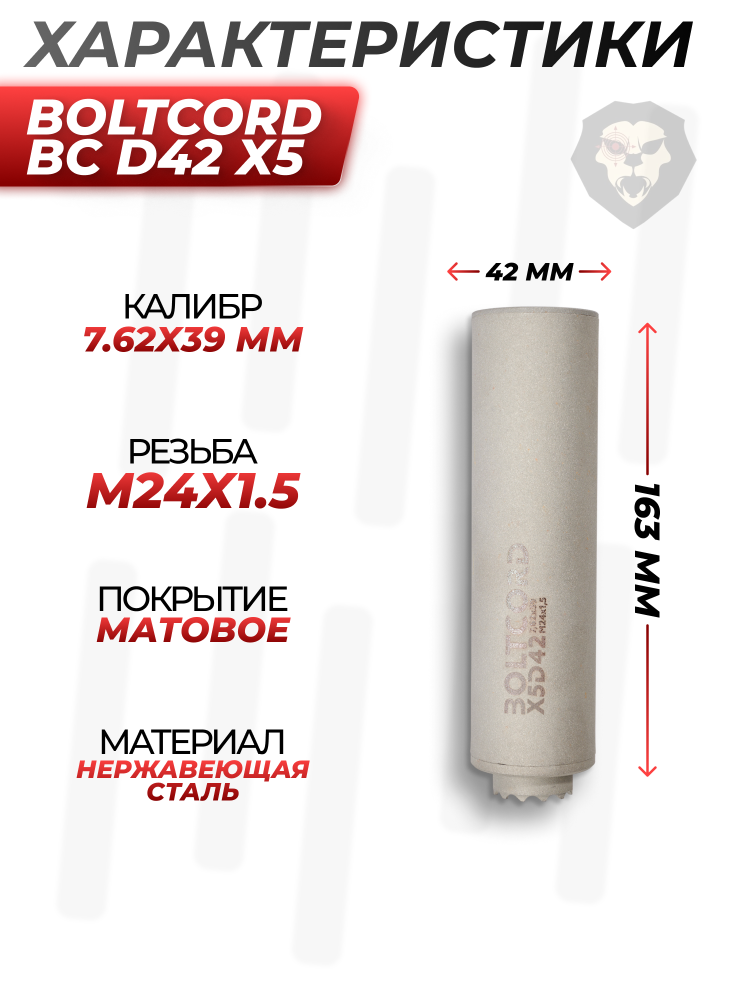 Информация о товаре "Реактивный ДТК Boltcord BC D42 X5 (7.62х39 мм, M24x1.5)" носит ознакомительный характер, и не является публичной офертой, определяемой положениями Статьи 437 Гражданского кодекса Российской Федерации, характеристики, внешний вид, цвет и комплектация могут быть изменены производителем без уведомления.