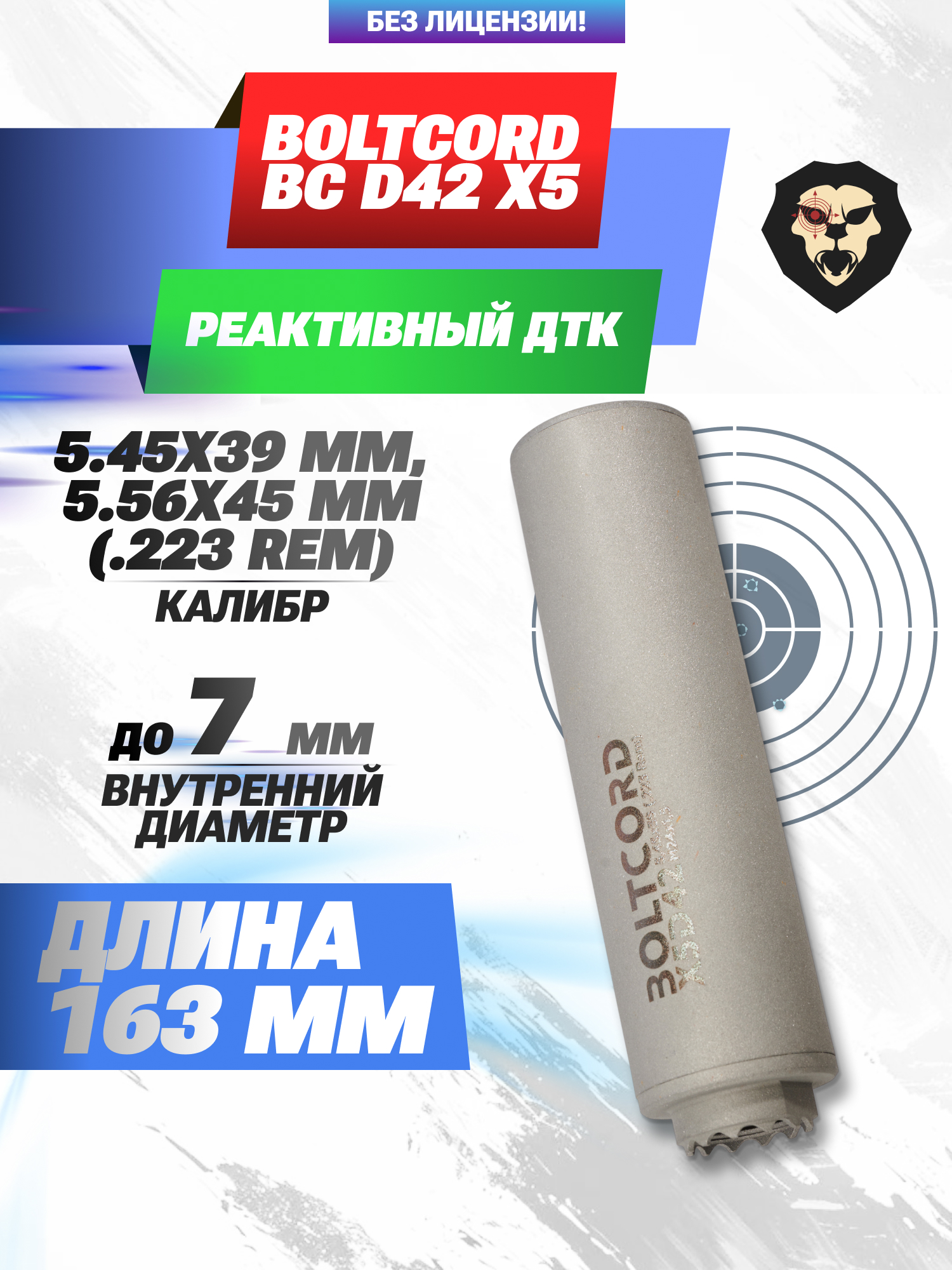 Информация о товаре "Реактивный ДТК Boltcord BC D42 X5 (M24x1.5, 5.45х39 мм, .223Rem)" носит ознакомительный характер, и не является публичной офертой, определяемой положениями Статьи 437 Гражданского кодекса Российской Федерации, характеристики, внешний вид, цвет и комплектация могут быть изменены производителем без уведомления.