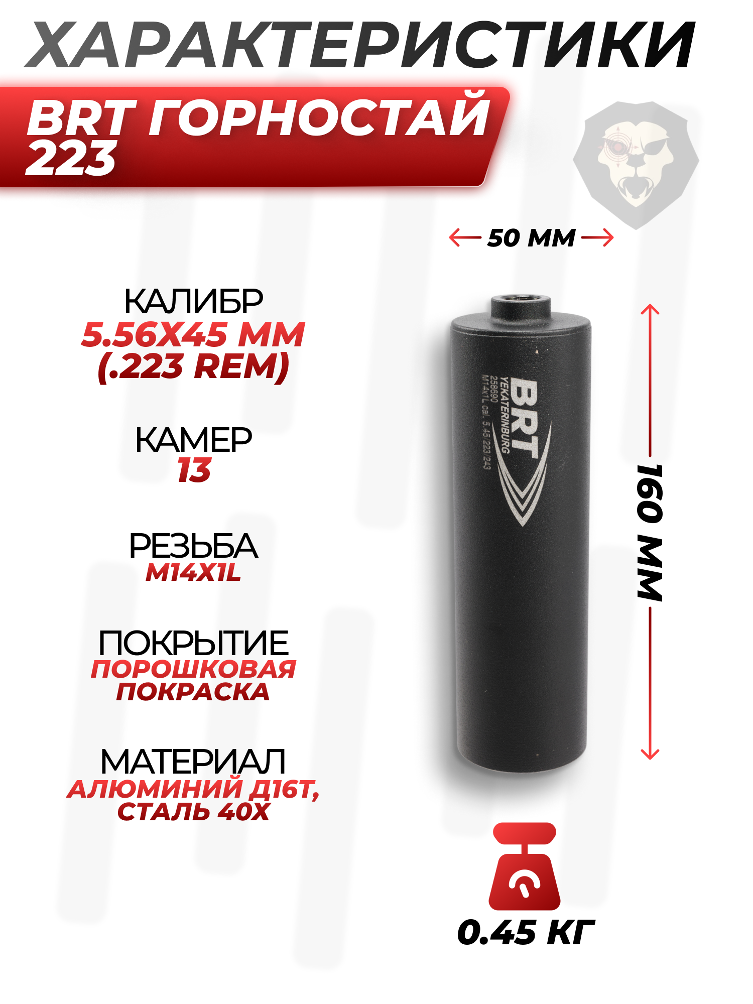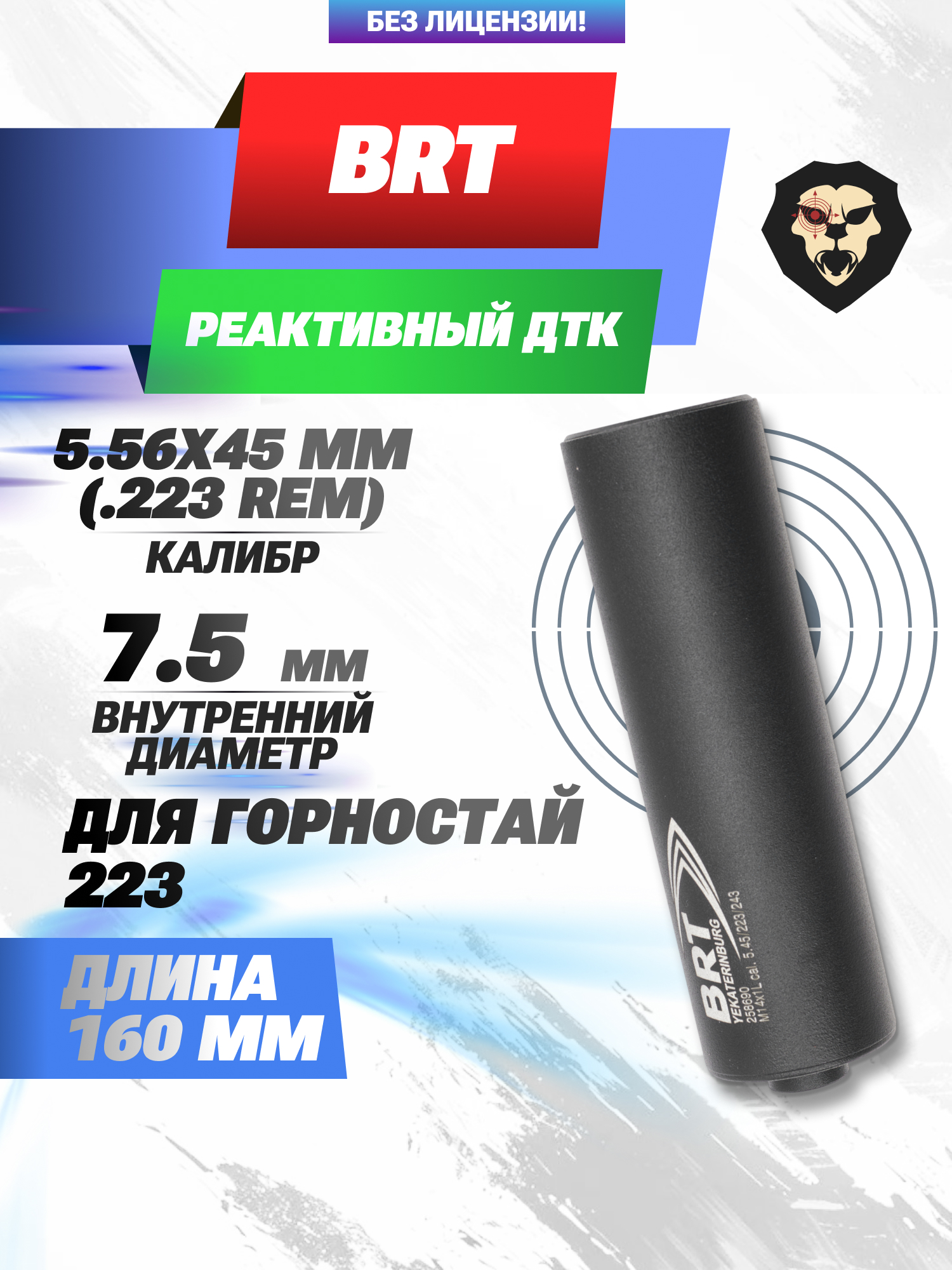Информация о товаре "Реактивный ДТК BRT для Горностай 223 (дульный тормоз, .223 Rem, ВПО-193)" носит ознакомительный характер, и не является публичной офертой, определяемой положениями Статьи 437 Гражданского кодекса Российской Федерации, характеристики, внешний вид, цвет и комплектация могут быть изменены производителем без уведомления.