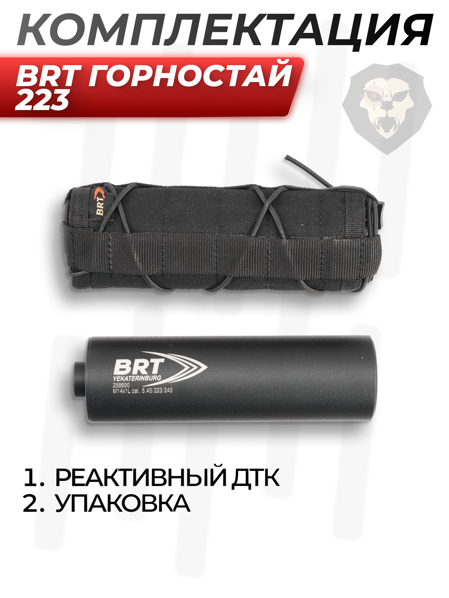 БРТ ДТК представленной модели предназначается для установки на гражданский огнестрельный карабин «Горностай» ВПО-193 и его модификации под калибр .223 Rem. Монтаж выполняется непосредственно на дульный срез оружия путем накручивания на резьбу M14x1L до упора без необходимости применения дополнительных инструментов.