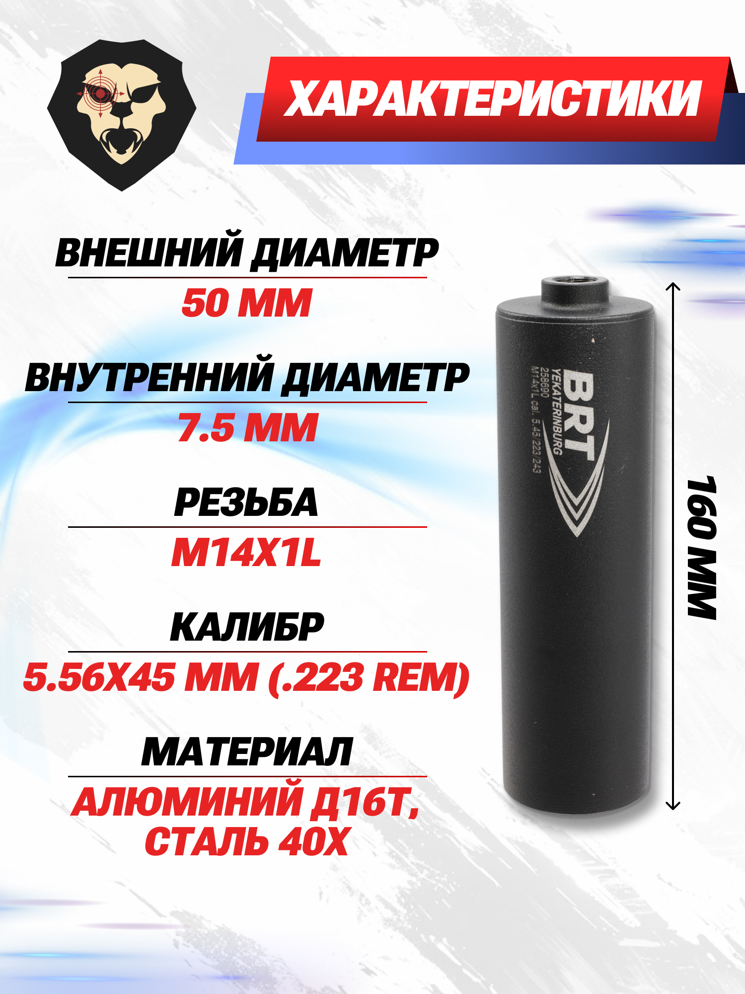 Обозреваемая дульная насадка производится российской мастерской RDT Russia. Корпус ДТК имеет закрытый формат - длина «банки» составляет 16 см, а внешний диаметр не превышает 5 сантиметров. В качестве материала при изготовлении изделия применяется легкий высокопрочный сплав алюминия Д16Т, а наиболее ответственные внутренние узлы выполнены из инструментальной стали 40Х, что повышает износоустойчивость насадки.