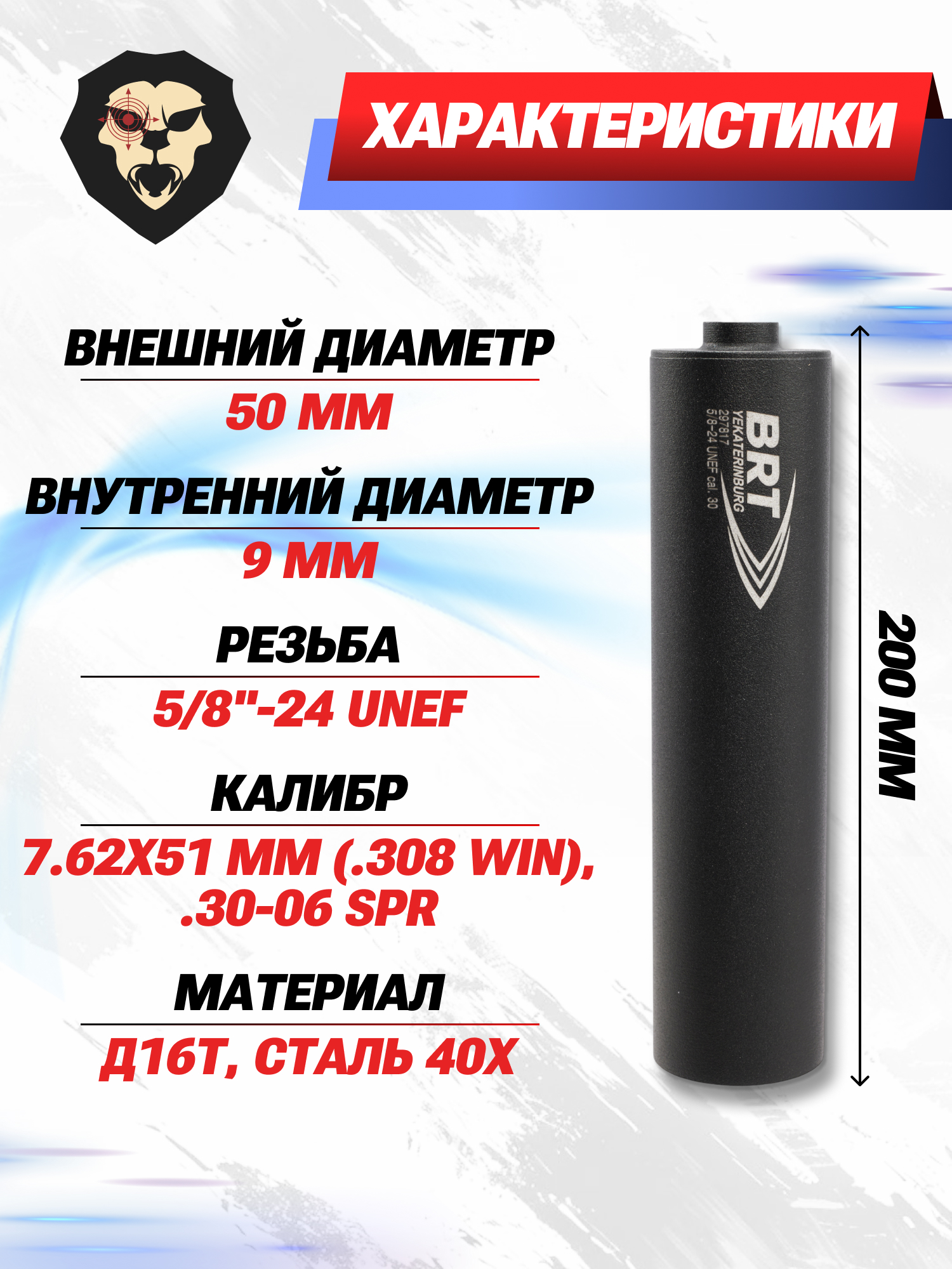 «Банка» крепится на ствол при помощи резьбы 5/8"-24 UNEF. Длина устройства 200 миллиметров. Внешний диаметр составил 50 миллиметров, при этом диаметр пулепроходного отверстия - 9 миллиметров. Вес конструкции - 496 граммов.