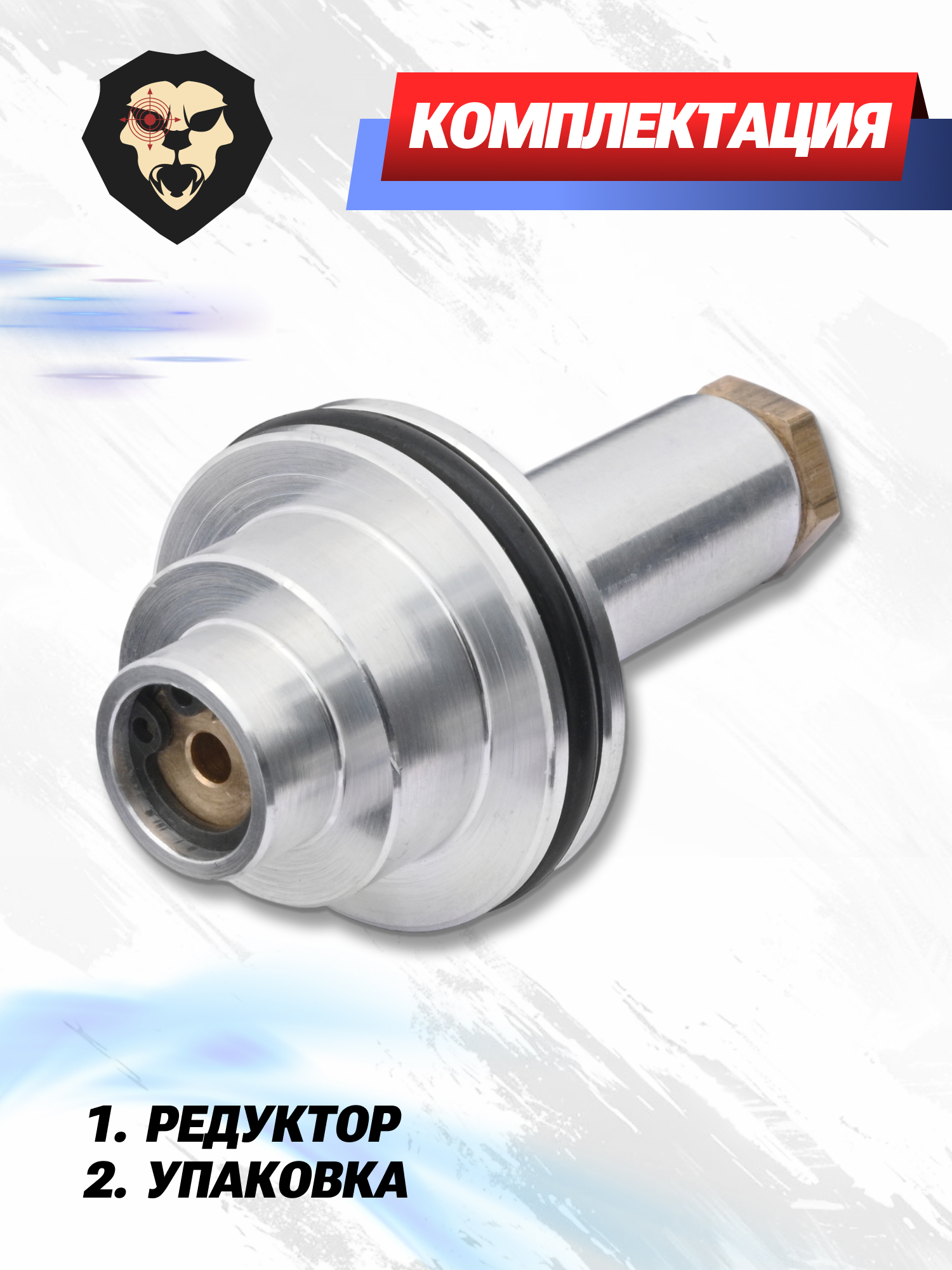 Корпус на Корсар редуктор изготавливается из дюралевого прута путем обработки на ЧПУ станке, а материалом для внутренних элементов послужила латунь. При создании деталей инженеры Krugergun учитывают тепловые расширения и вносят корректную шероховатость поверхностей, ввиду чего повреждение таковых вследствие изменения температуры или частого снятия и установки исключено. На стыке соединения со стаканом присутствует канавка с установленным в нее уплотнительным кольцом.
