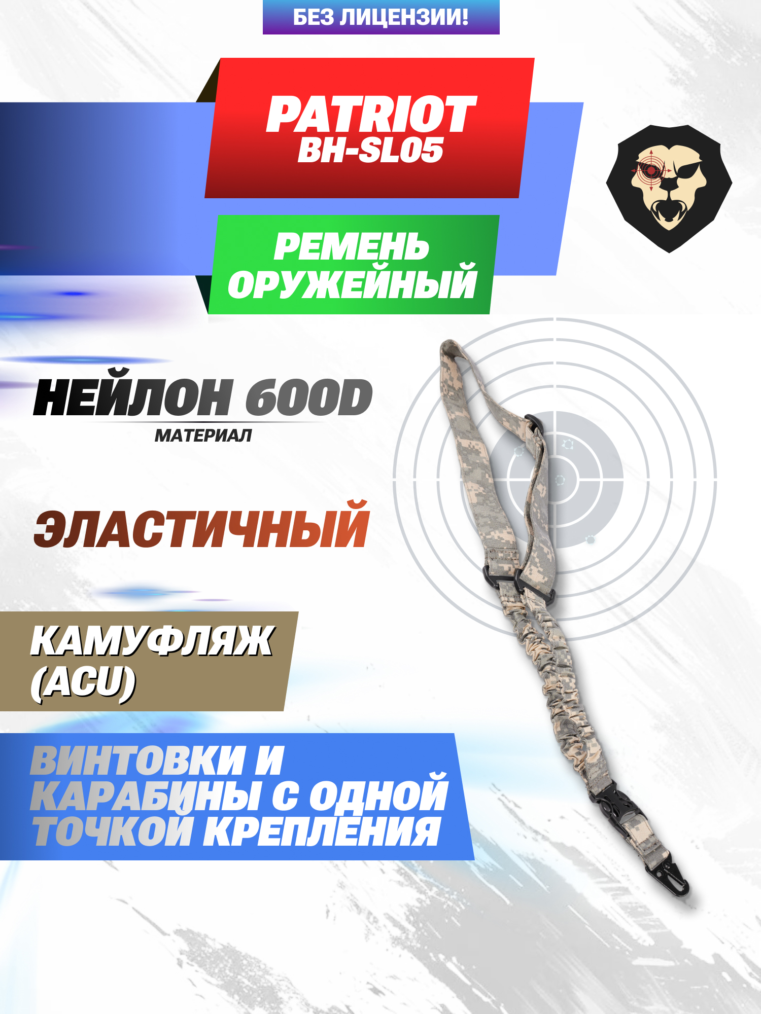Артикул производителя BH-SL05 Ремень эластичный Patriot BH-SL05 (ACU, один карабин) по низкой цене 945 руб. Модель со штрихкодом производителя Вы можете оплатить наложенным платежем с доставкой или в отделении транспортной компании (ПЭК, СДЭК, Boxberry). Ваш заказ со штрихкодом 2000000052533 забрать на почте с оплатой при получении в любой части Российской Федерации.