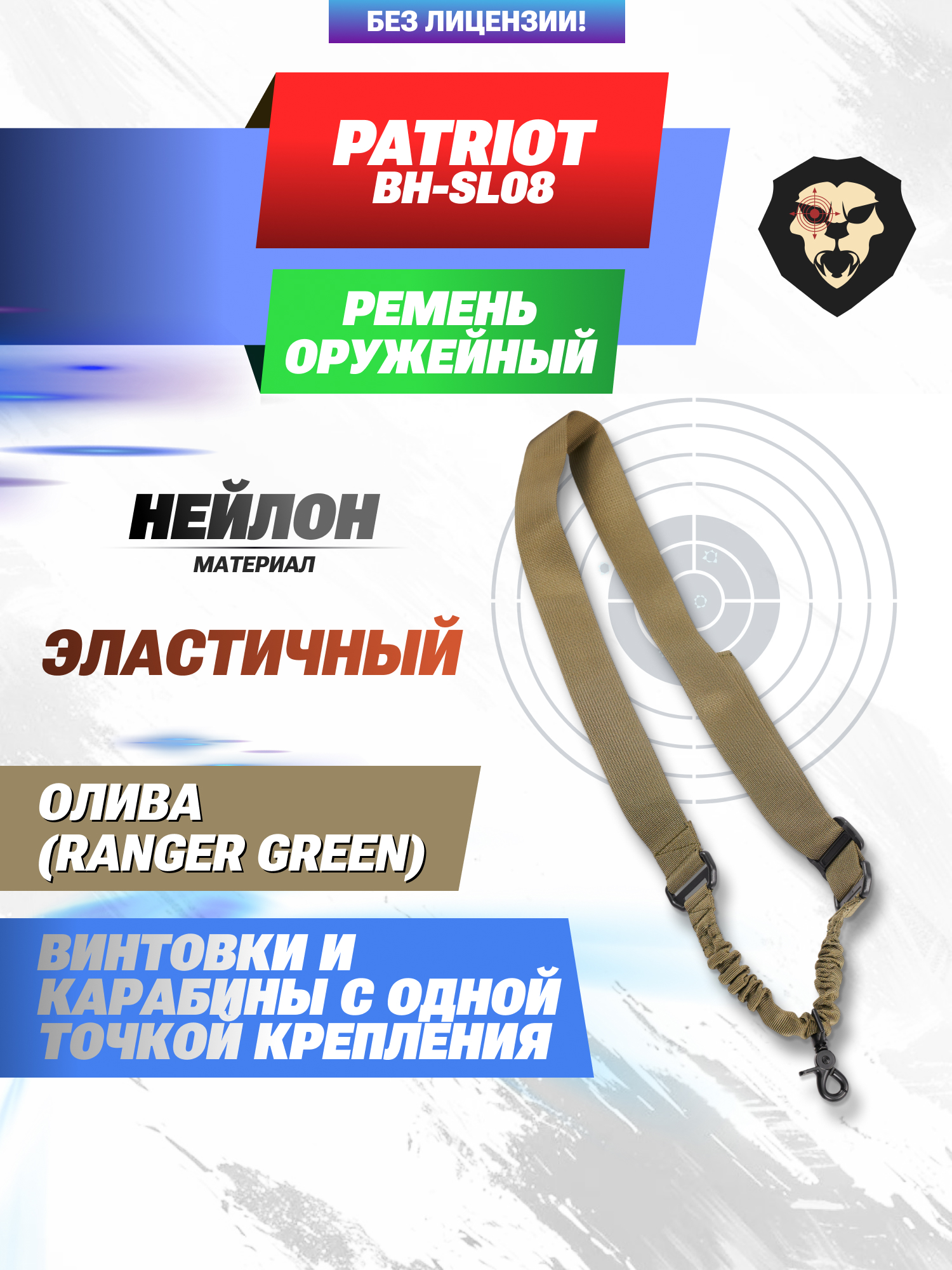 Тактический оружейный ремень BH-SL08 входит в класс одноточечных. То есть изделие крепится только к задней антабке — ствольная часть остается свободной. Благодаря отсутствию второй точки монтажа перемещение винтовки не ограничено.