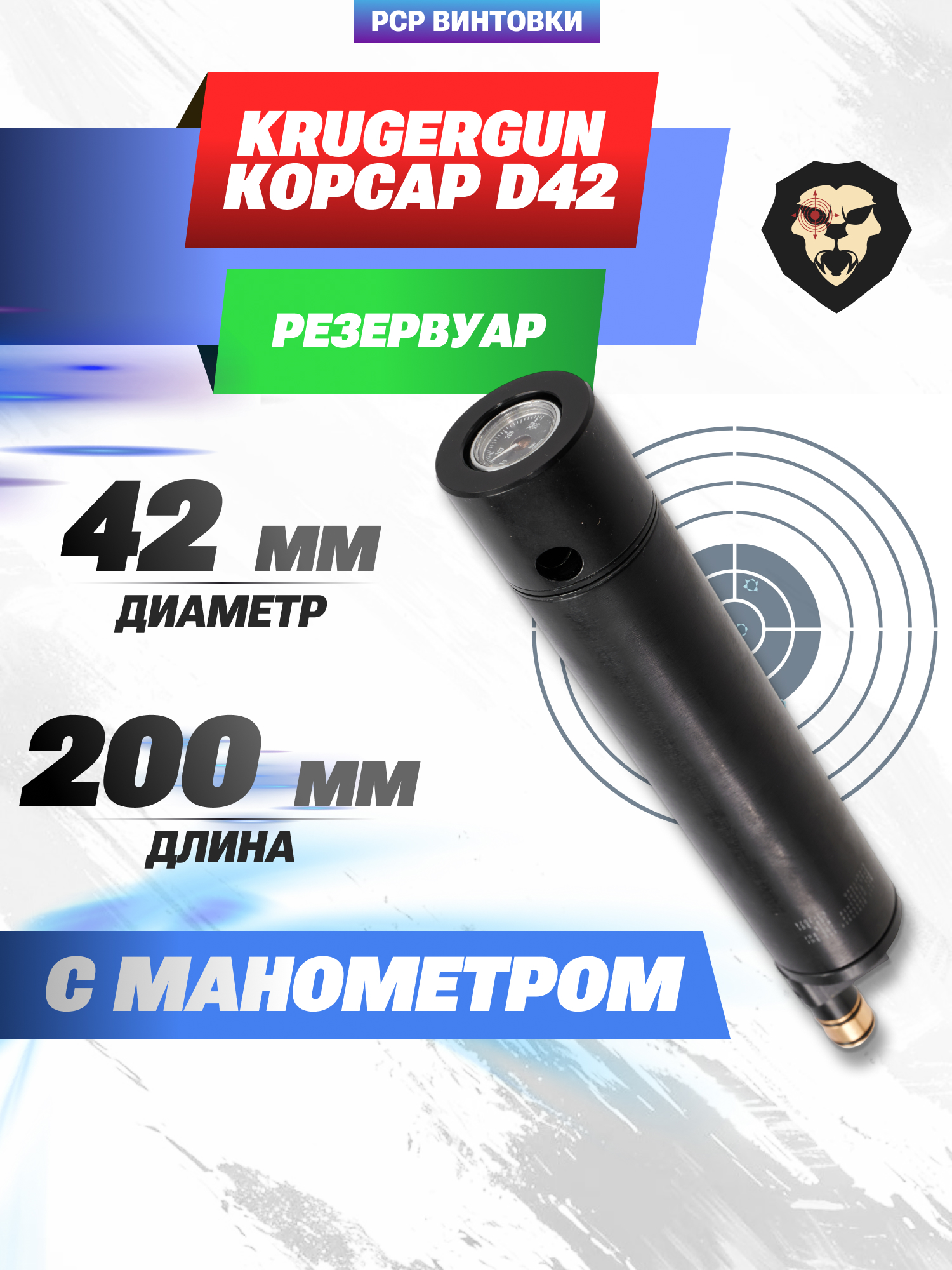 Резервуар KrugerGun Корсар D42 (без редуктора, 200 мм, с манометром) купить в интернет-магазине Popadiv10.