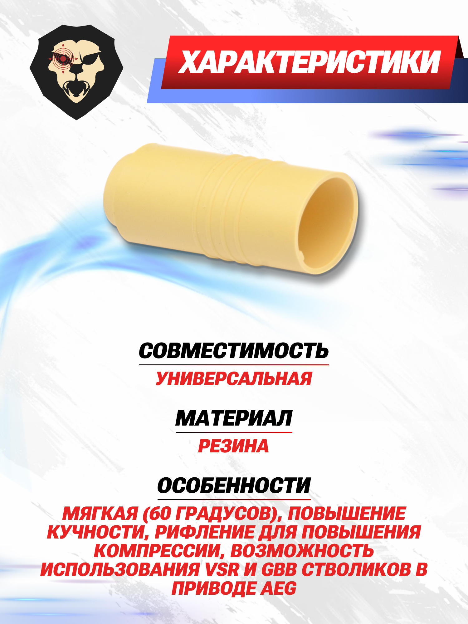 | Особенности | Мягкая (60 градусов), повышение кучности, рифление для повышения компрессии, возможность использования VSR и GBB стволиков в приводе AEG |