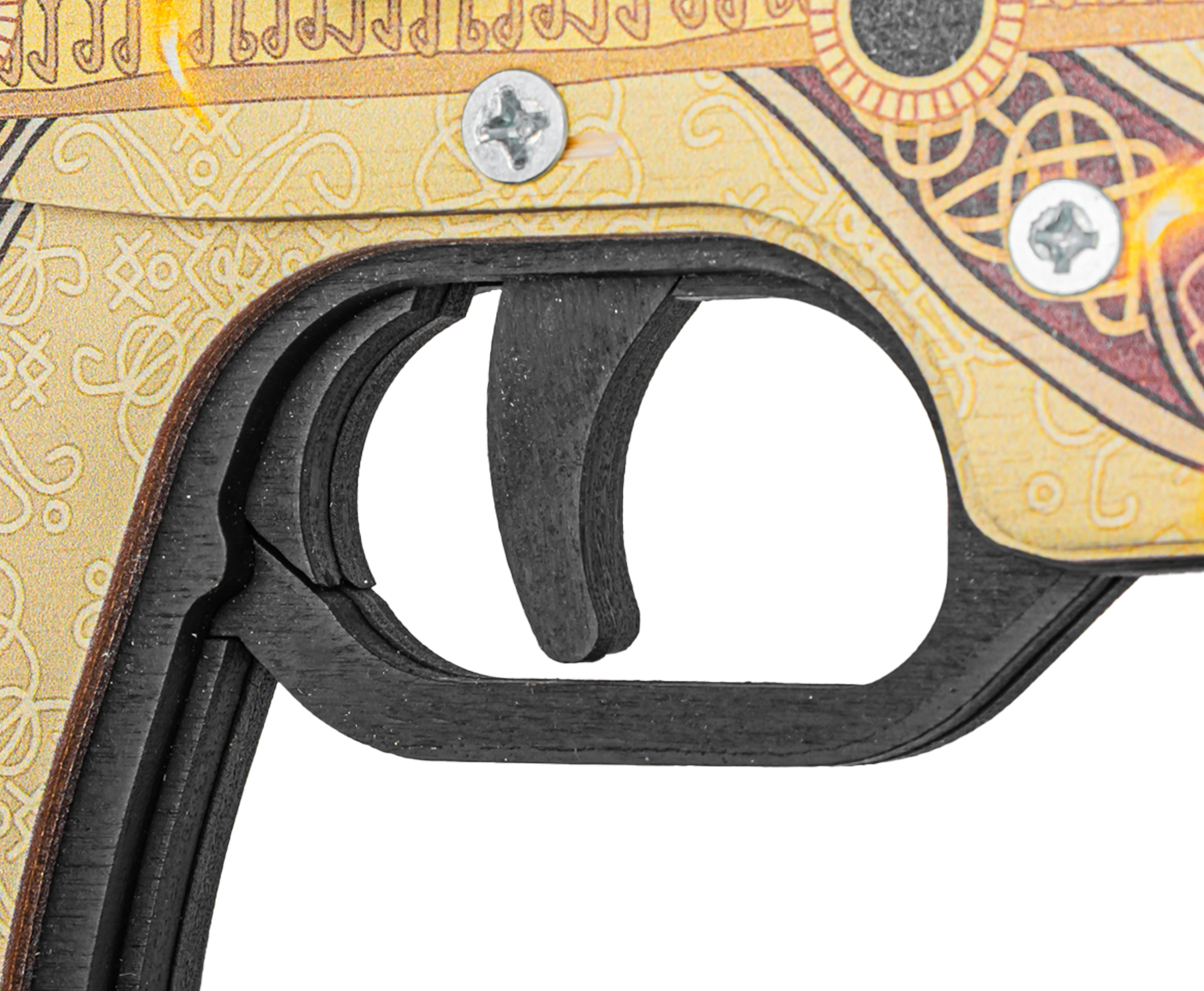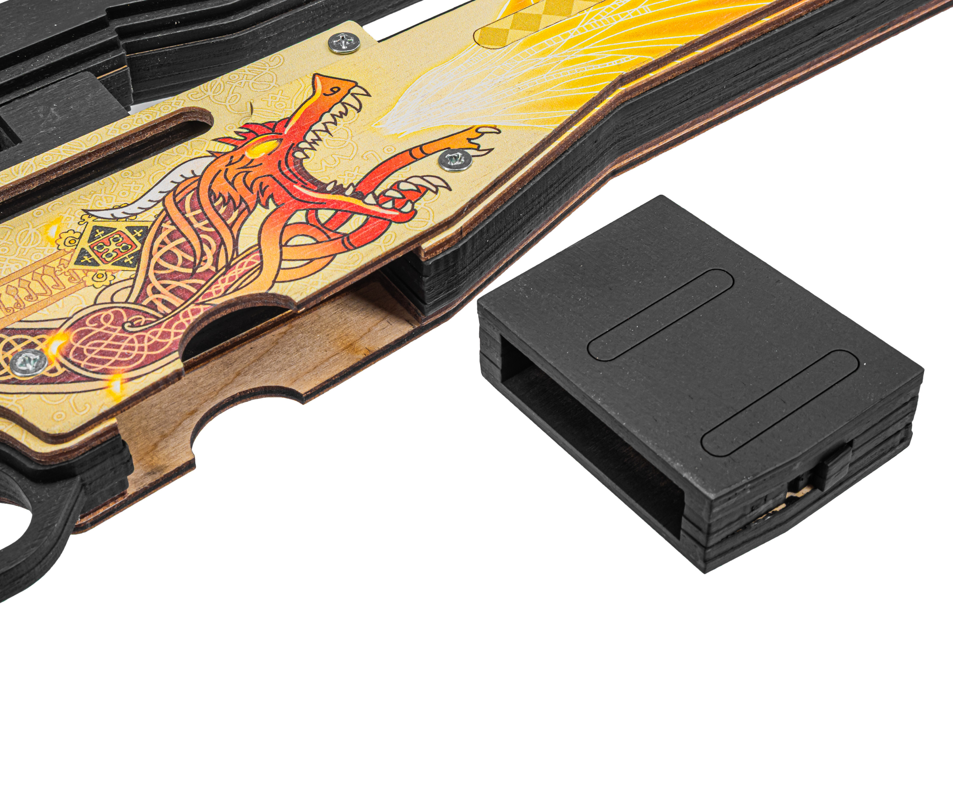 Снайперская винтовка резинкострел, помимо коллекционной ценности, предоставляет возможность потренироваться в меткости. Каучуковые эластичные жгуты под действием силы сжатия метаются на 10-и метровую дистанцию, при этом функцию мишеней способны выполнять комплектные фигурки в виде солдат. Максимальный боекомплект составляет 9 резинок, растягиваемых между наствольным выступом и поворотным колесом с зацепами, при этом модель содержит отъемный коробчатый магазин, как на боевом прототипе.