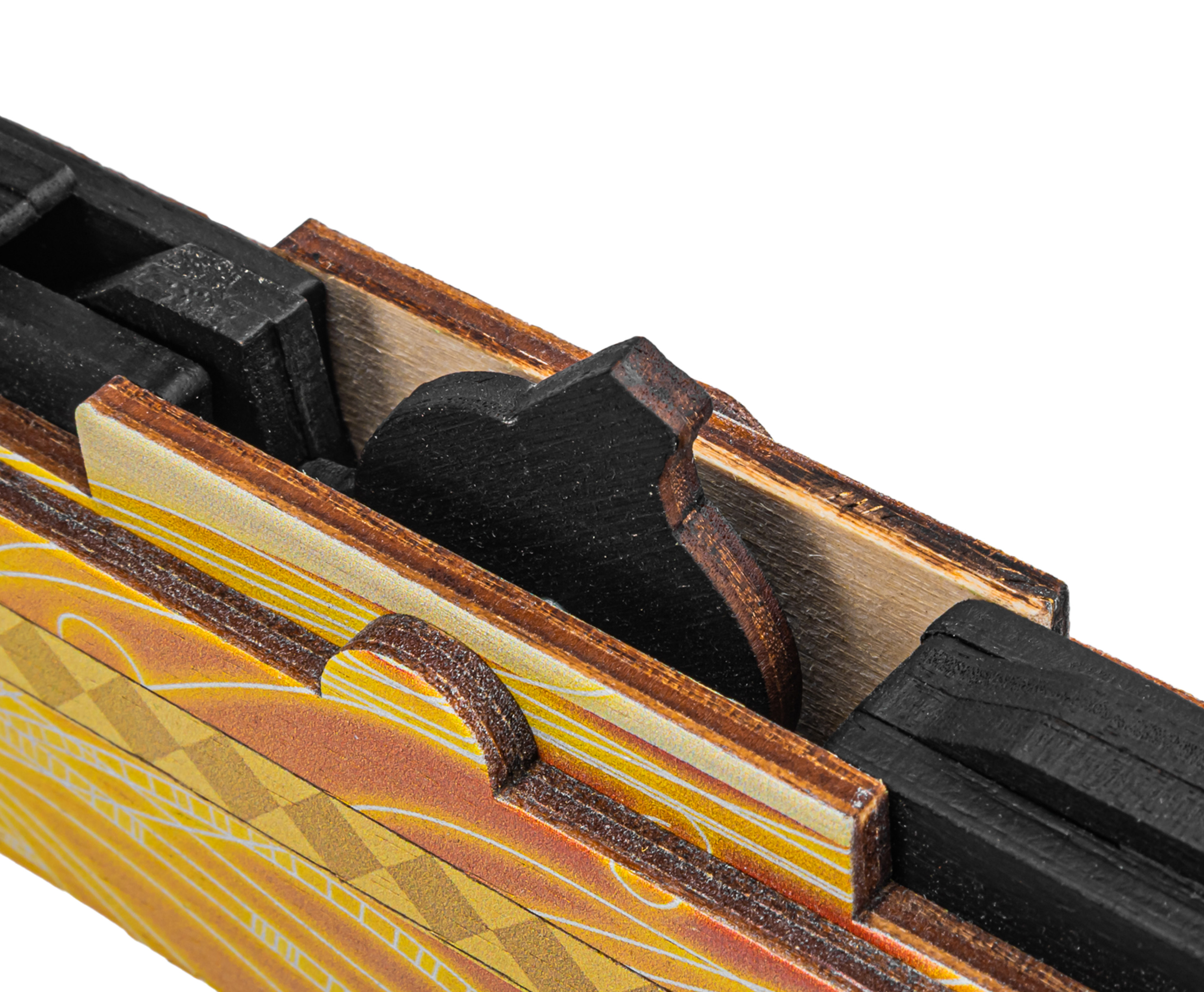 Корпус AWP выполнен из предварительно отшлифованных и вырезанных лазером фанерных деталей из твердых пород натуральной древесины. Для надежности и жесткости элементы конструкции дополнительно скрепляются нержавеющими металлическими винтами, а для экономии пространства при транспортировке или хранении приклад и ствольная часть способны демонтироваться. Из дополнительных особенностей стоит отметить наличие складных сошек, фиксируемых при помощи резинок.