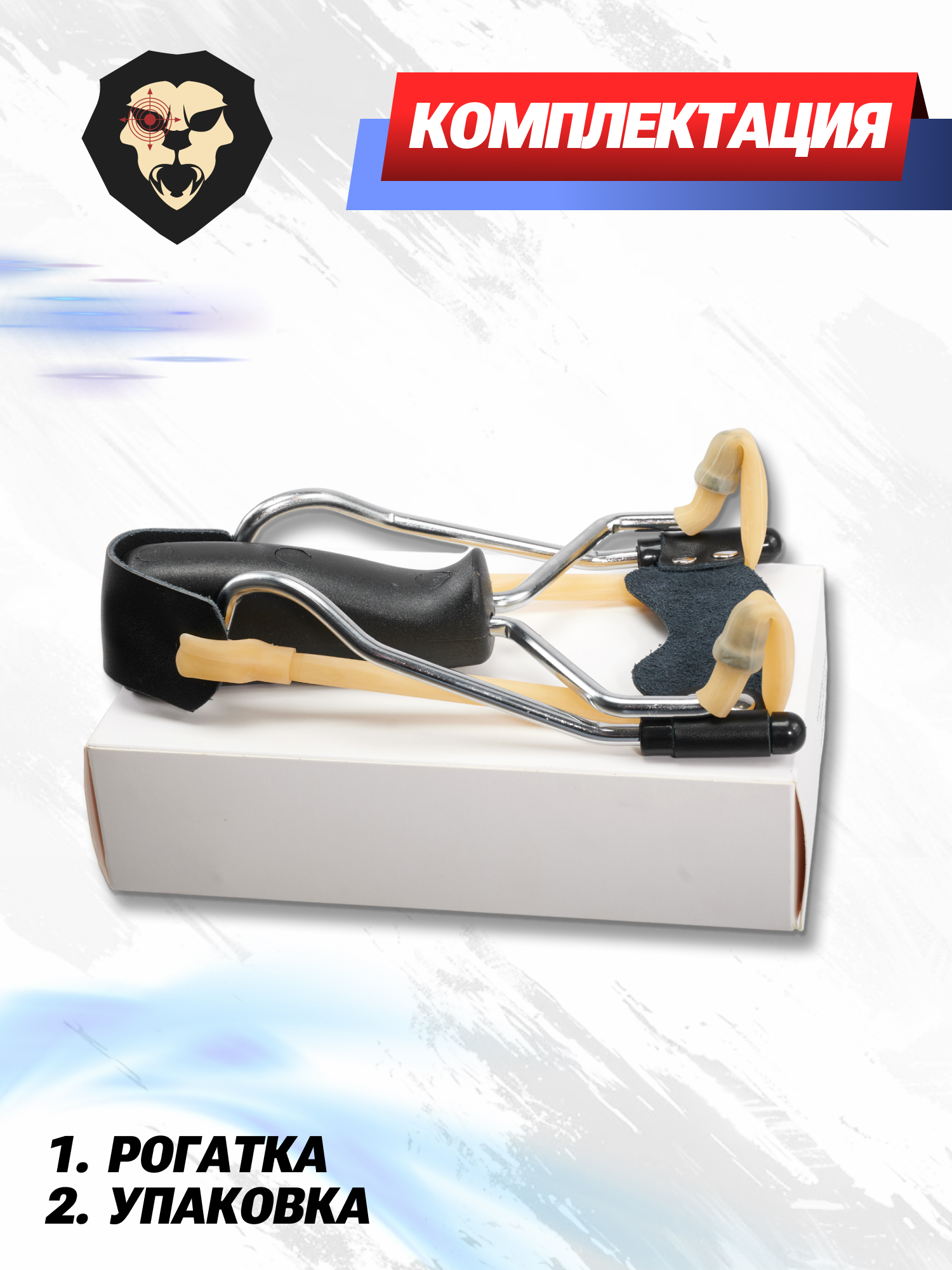 Рогатка CenterShot обладает прочным стальным каркасом - поверхность хромирована во избежание возникновение очагов коррозии. Толщина металла составляет 6 мм. Для удобства удержания предусмотрена эргономичная рукоятка из ударостойкого полимера.