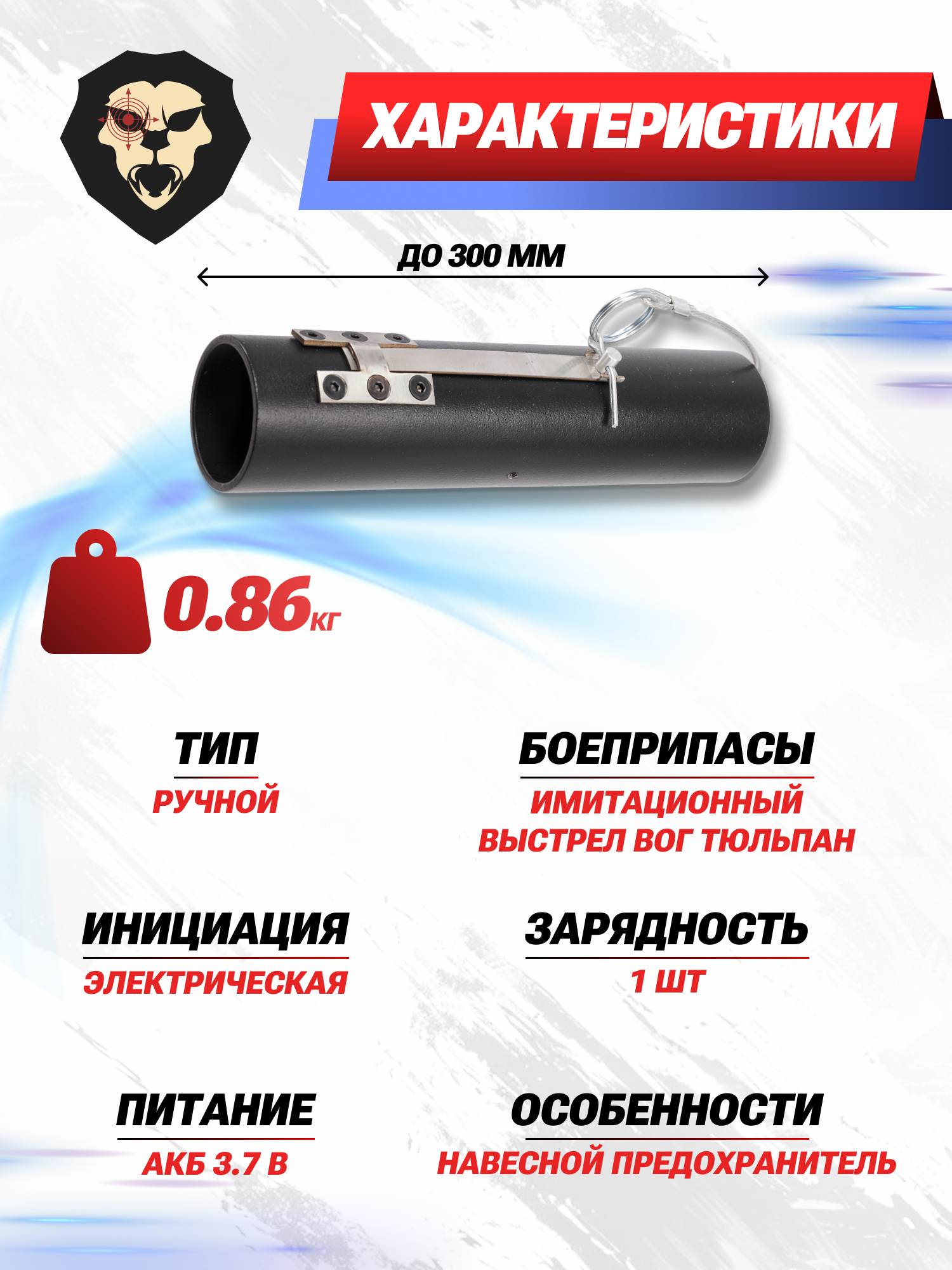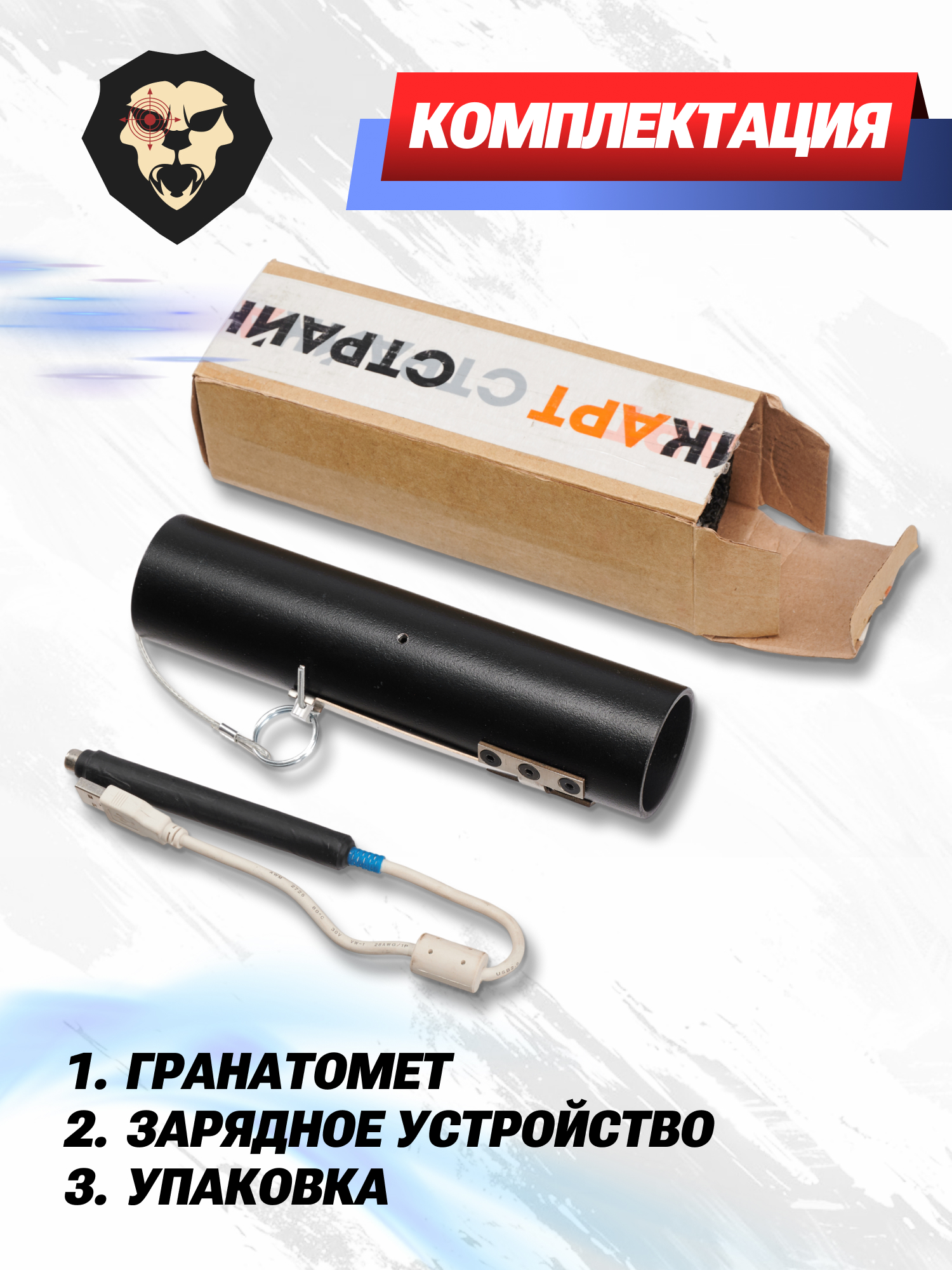 | Комплектация | Гранатомет, зарядное устройство, упаковка |