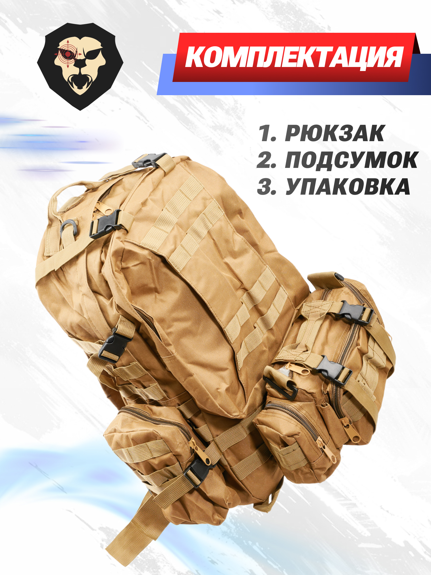 | Дополнительные элементы | Фронтальный блок из 4 карманов, боковой карман — 2 шт, крепежные ленты, соединительный ремешок |