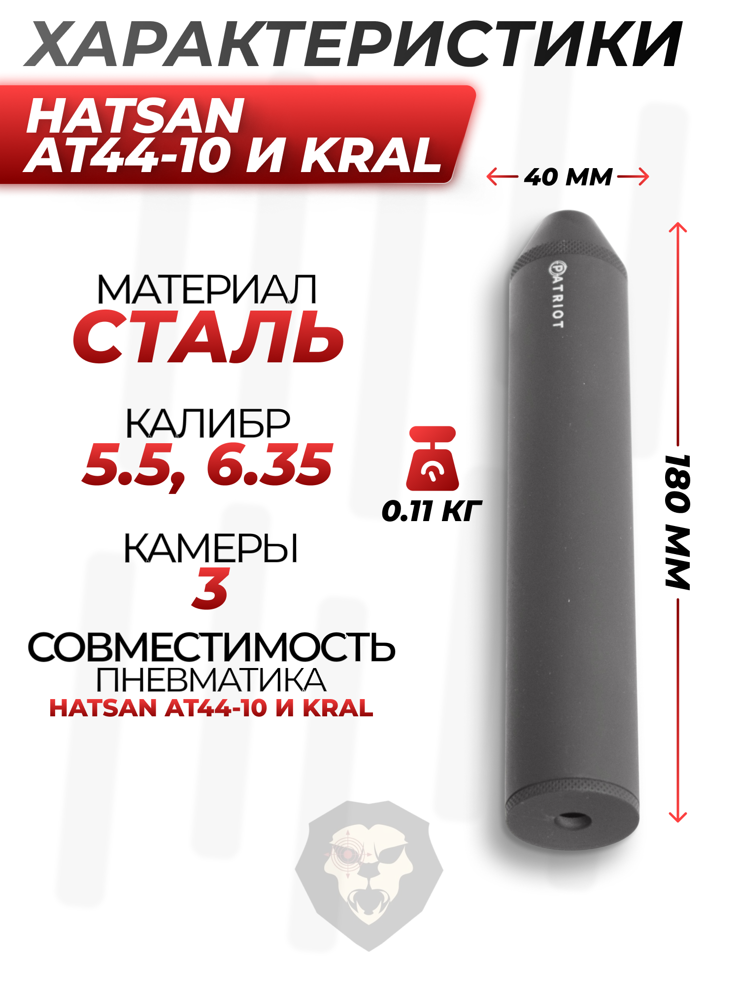 Модератор Patriot BH-MD154 для Hatsan AT44-10 и Kral (3 камеры, 5.5 мм, 6.35 мм) купить в интернет-магазине Popadiv10.