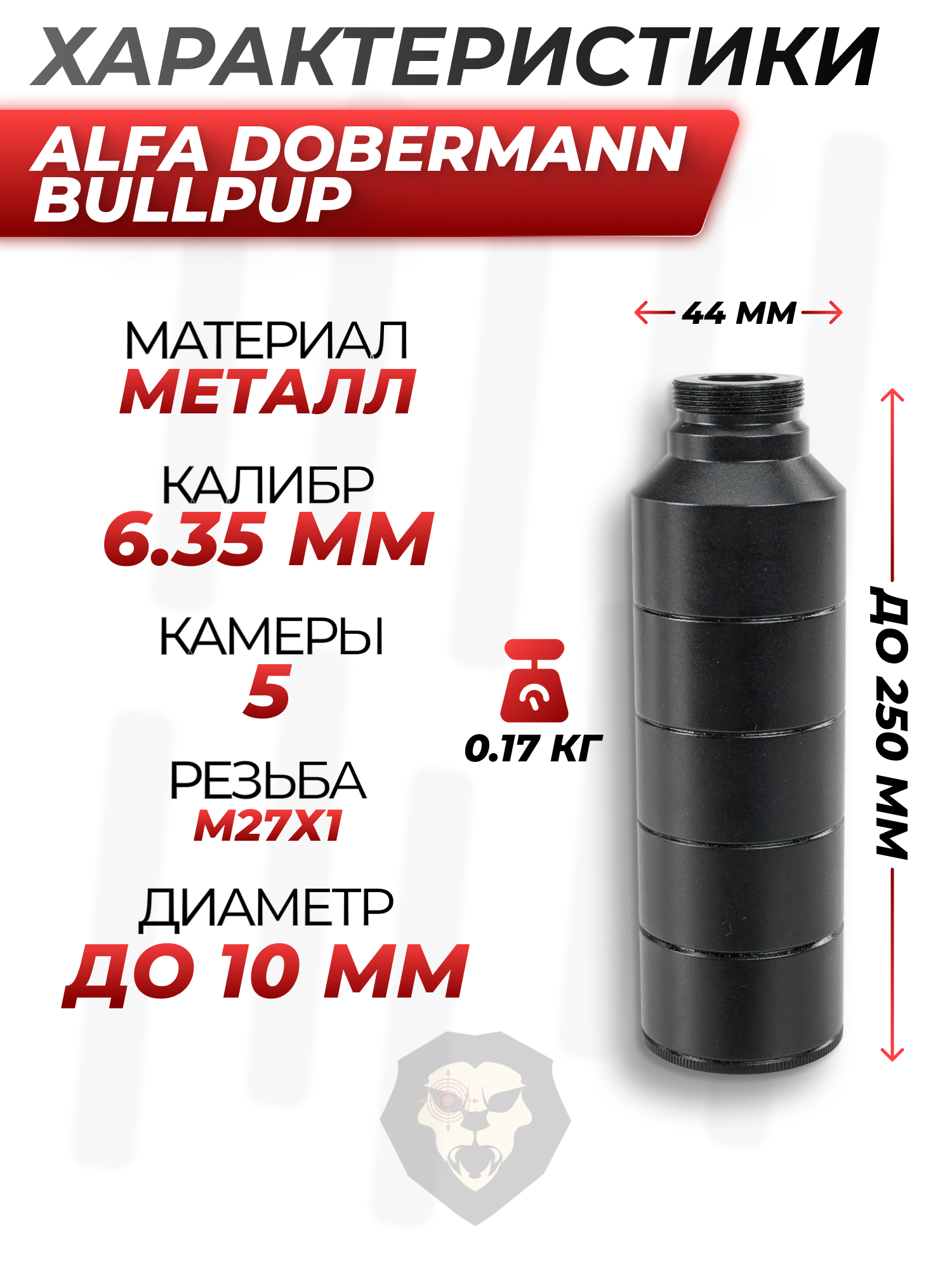 Саундмодератор Dobermann БуллПап D44 (6.35 мм) купить в интернет-магазине Popadiv10.