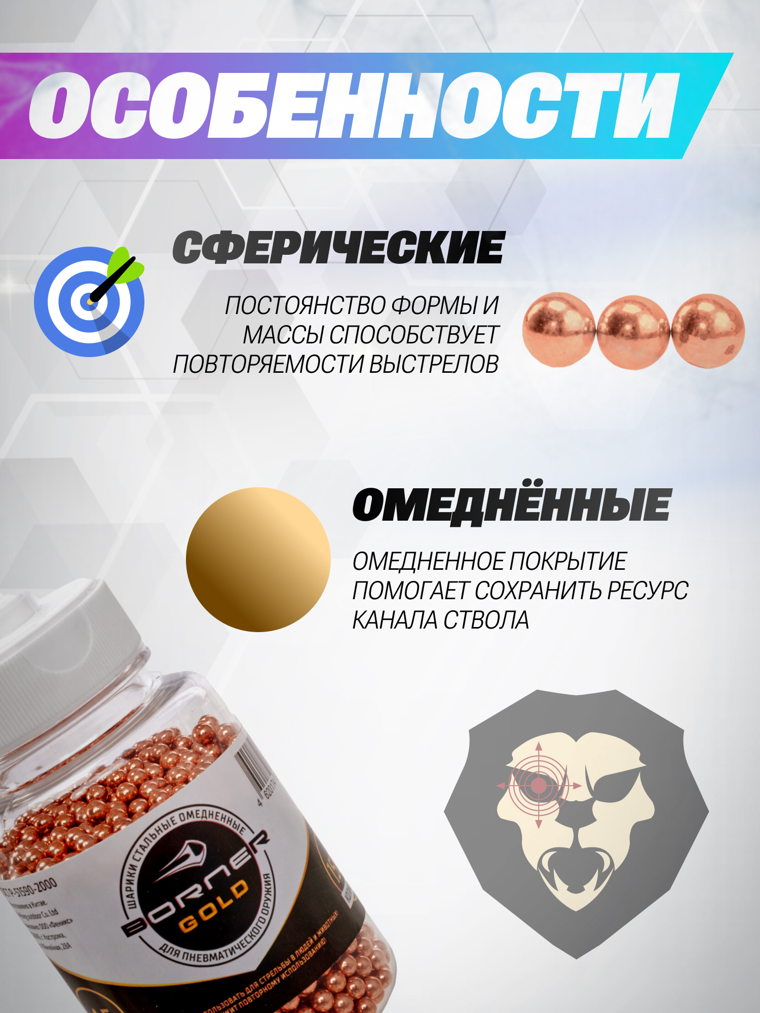 О главном достоинстве шариков линейки Gold можно узнать из их названия. Стальные боеприпасы рассматриваемой серии покрывают медной оболочкой - указанный материал обладает меньшей твердостью, чем ствол пневматики. Следовательно, омедненная пуля не оставляет царапин и забоин в его канале.