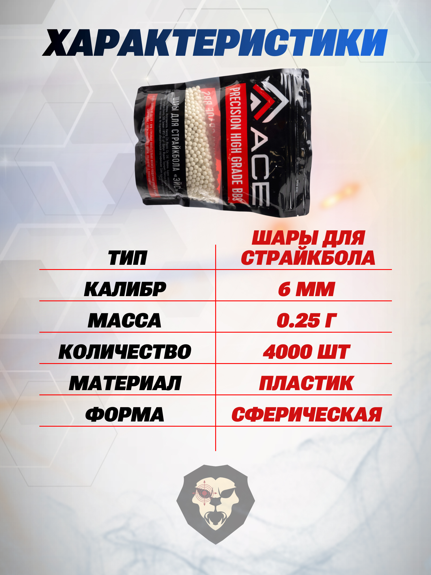 Шарики для страйкбола ACE B94 трассирующие 0.25 г (зеленые, 4000 шт) купить в интернет-магазине Popadiv10.