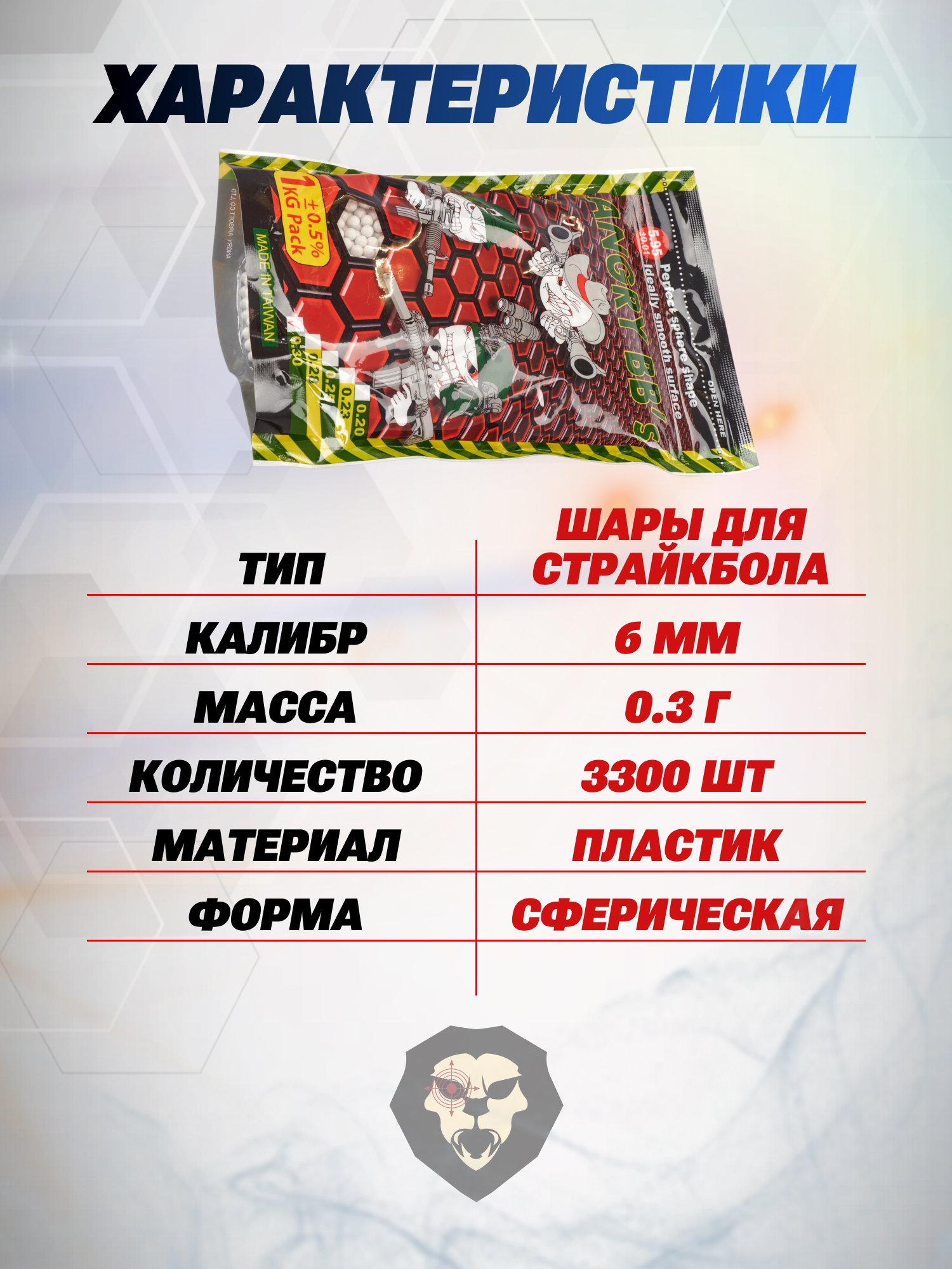 Шарики для страйкбола Angry BB's 0.3 г (3300 штук, 1 кг, белые) купить в интернет-магазине Popadiv10.